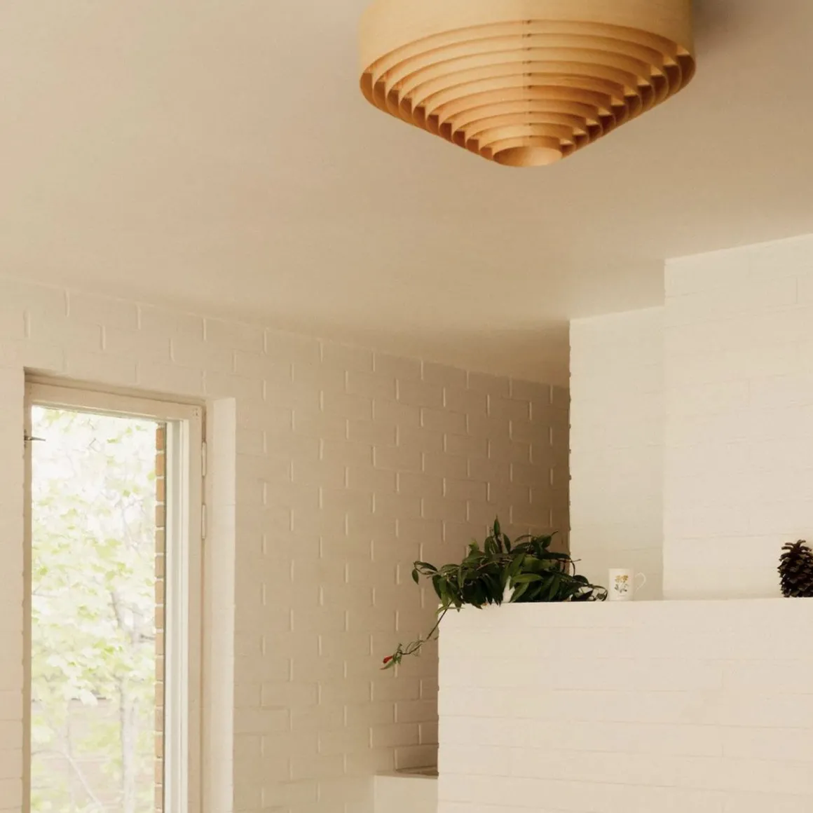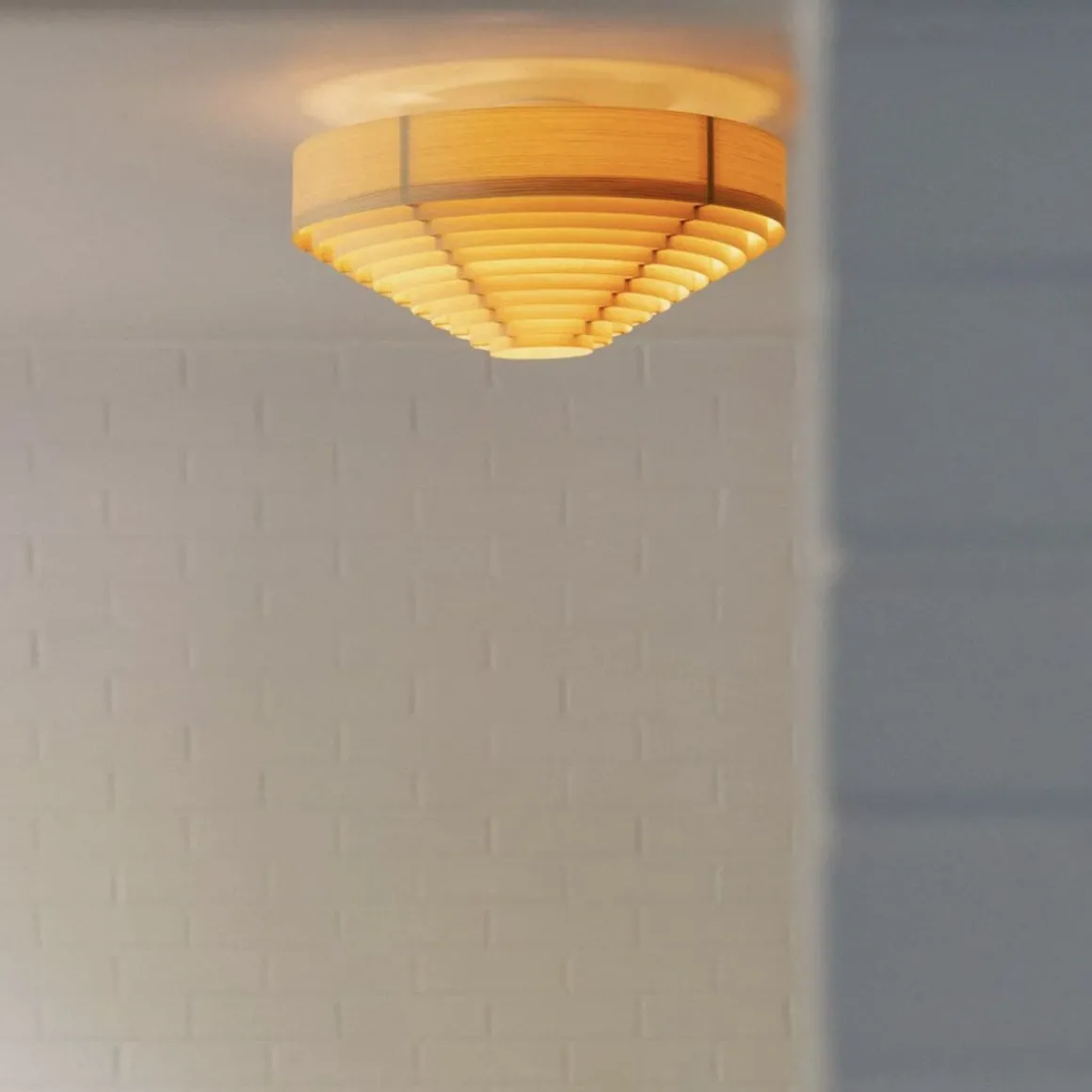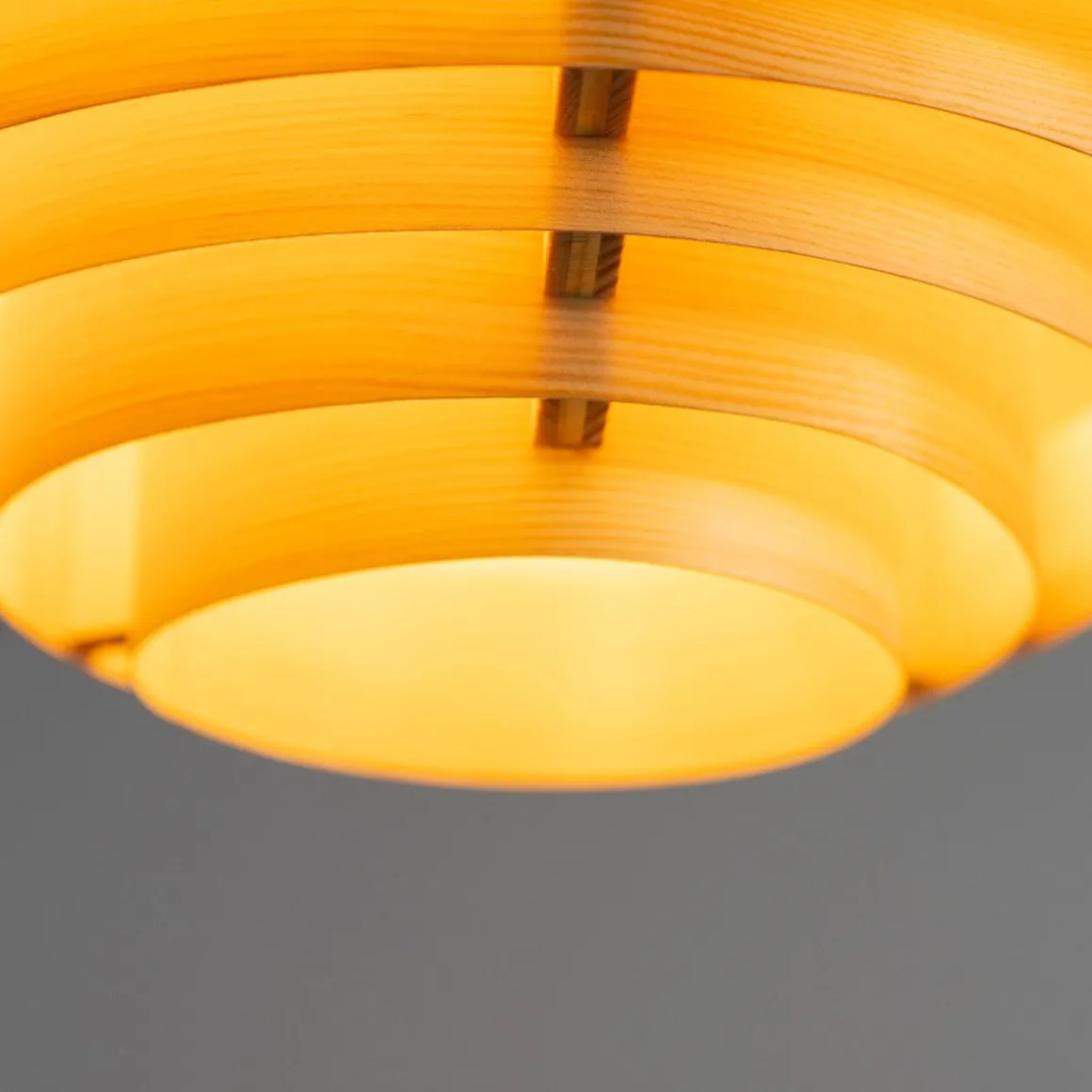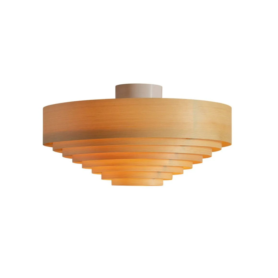 1005 Hans de Vaarnii par Hans-Agne Jakobsson. Les créations en placage de pin de Hans-Agne Jakobsson sont le résultat d’une recherche approfondie sur la nature du placage de pin, en particulier en relation avec la lumière. Vaarnii a repensé ces designs classiques pour l’espace contemporain. Les plafonniers Hans sont visuellement audacieux mais physiquement légers, de taille généreuse et émettent une lumière attrayante filtrée par le pin.Les plafonniers Hans sont disponibles en deux tailles ; 42 cm de diamètre et 55 cm de diamètre, et présentent les cercles concentriques graphiques en contreplaqué qui rendent cette série distincte.
