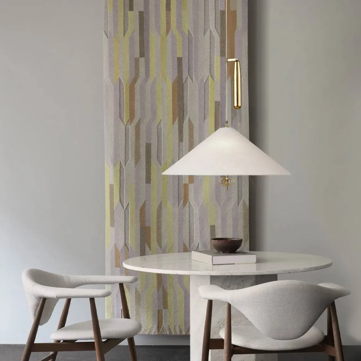 1967 de Gubi. Connu par beaucoup comme « l’homme qui a illuminé la Finlande », le légendaire designer et métallurgiste Paavo Tynell est l’une des figures marquantes du design industriel du XXe siècle. Conception Tynell classique des années 1950, la suspension 1967 développe le langage de conception développé en 1948 pour la suspension 1965. Le 1967 se caractérise par un abat-jour conique en toile qui dégage une lumière ambiante chaleureuse, avec la quincaillerie en laiton emblématique de Tynell ajoutant une expression subtile et haut de gamme.