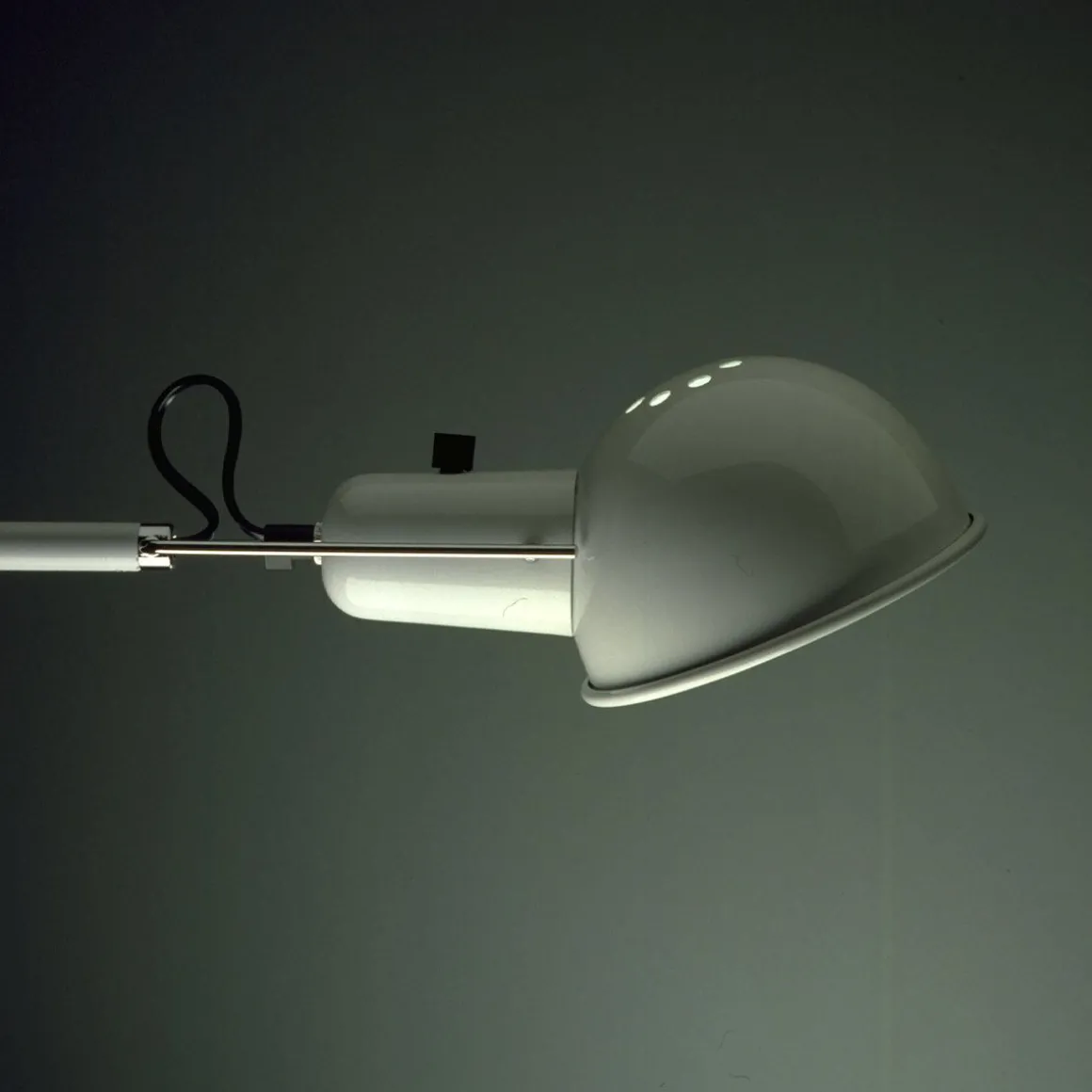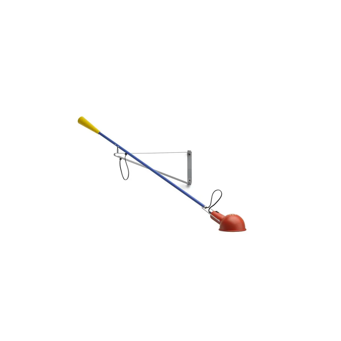Applique à lumière directe. Réflecteur, bras orientable et attache murale en acier recouvert d’un vernis liquide. Support de réflecteur en laiton chromé. Contre-poids conique en fonte.