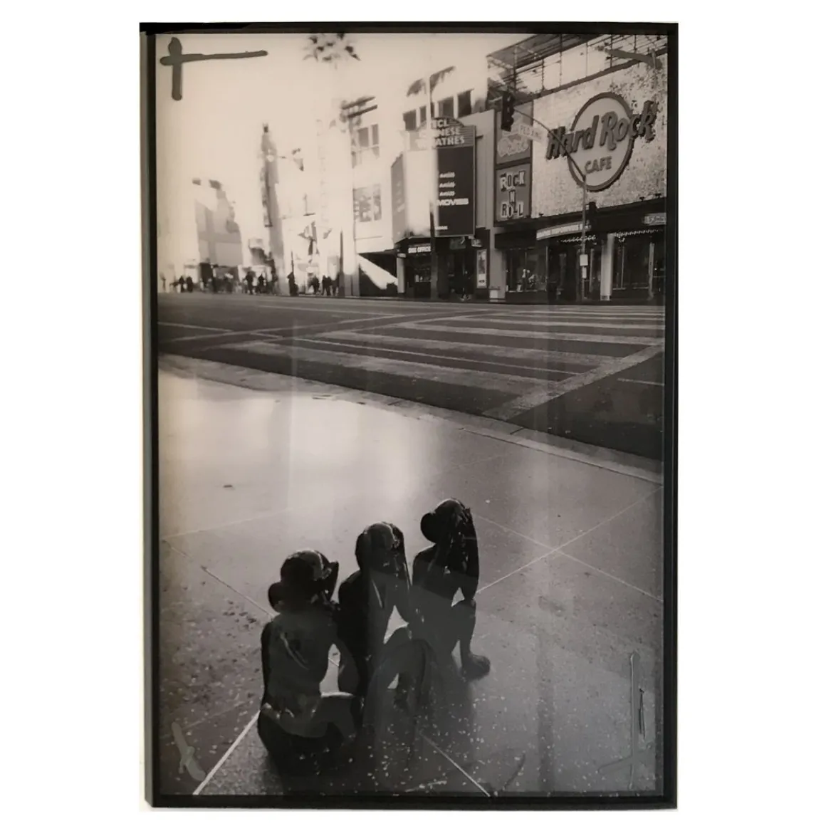 Photographie Les 3 sages Hollywood, oeuvre qui vous fait voyager aux quatre coins de la planète en compagnie de ces trois singes ! Ici, ils nous amènent faire un tour dans la belle ville de Los Angeles, debout sur les étoiles d’holllywood boulevard.