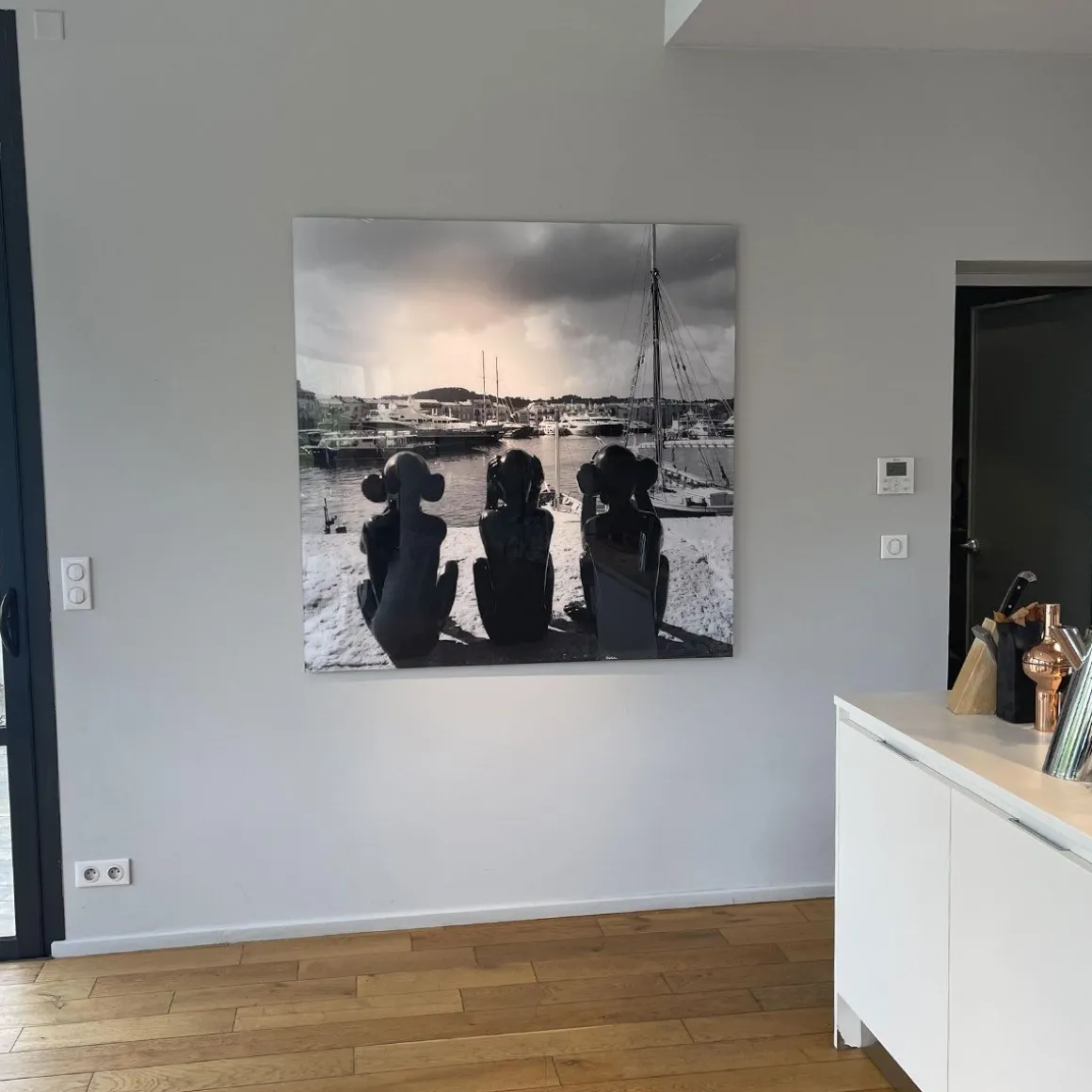 La photographie Les 3 sages Saint-Tropez – Vieux Port est une oeuvre engagée, qui nous fait voyager aux quatre coins de la planète en compagnie de ces trois singes sages dans tous leurs états ! Ici il nous amène faire un tour dans la belle ville de saint-Tropez, les pieds dans l’eau du port, qui nous rappelle l’enjeu de la vente de ces oeuvres pour le climat, puisqu’une partie des bénéfices seront reversés à une association. Nous ça nous donne envie d’aller faire un tour de voilier !