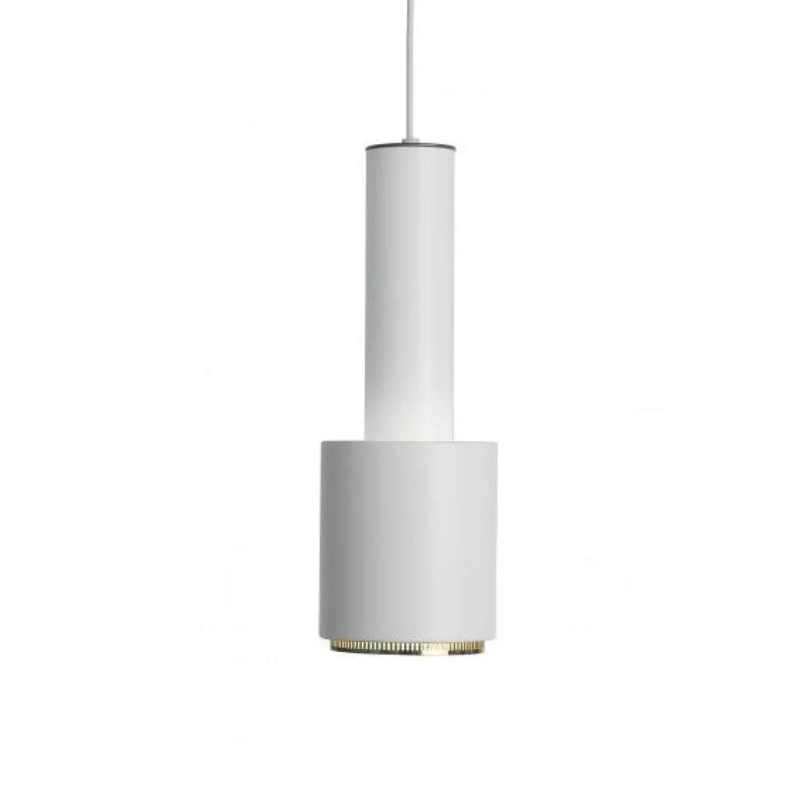 La suspension Artek A110, souvent appelée « lampe grenade » en raison de sa forme particulière, fut dessinée en 1952 pour équiper le bâtiment de l’association des ingénieurs finlandais. Aujourd’hui son faisceau de lumière concentré plaît également aux particuliers, et notamment pour l’éclairage de plans de travail ou de tables de repas. En 2012, Artek s’est associé avec le designer Mike Meire pour proposer deux nouvelles finitions colorées : anneau en laiton ou blanc, contrastant avec les abat-jours en blanc ou noir. Une suspension design étonnate pour une touche tendance et élégante !