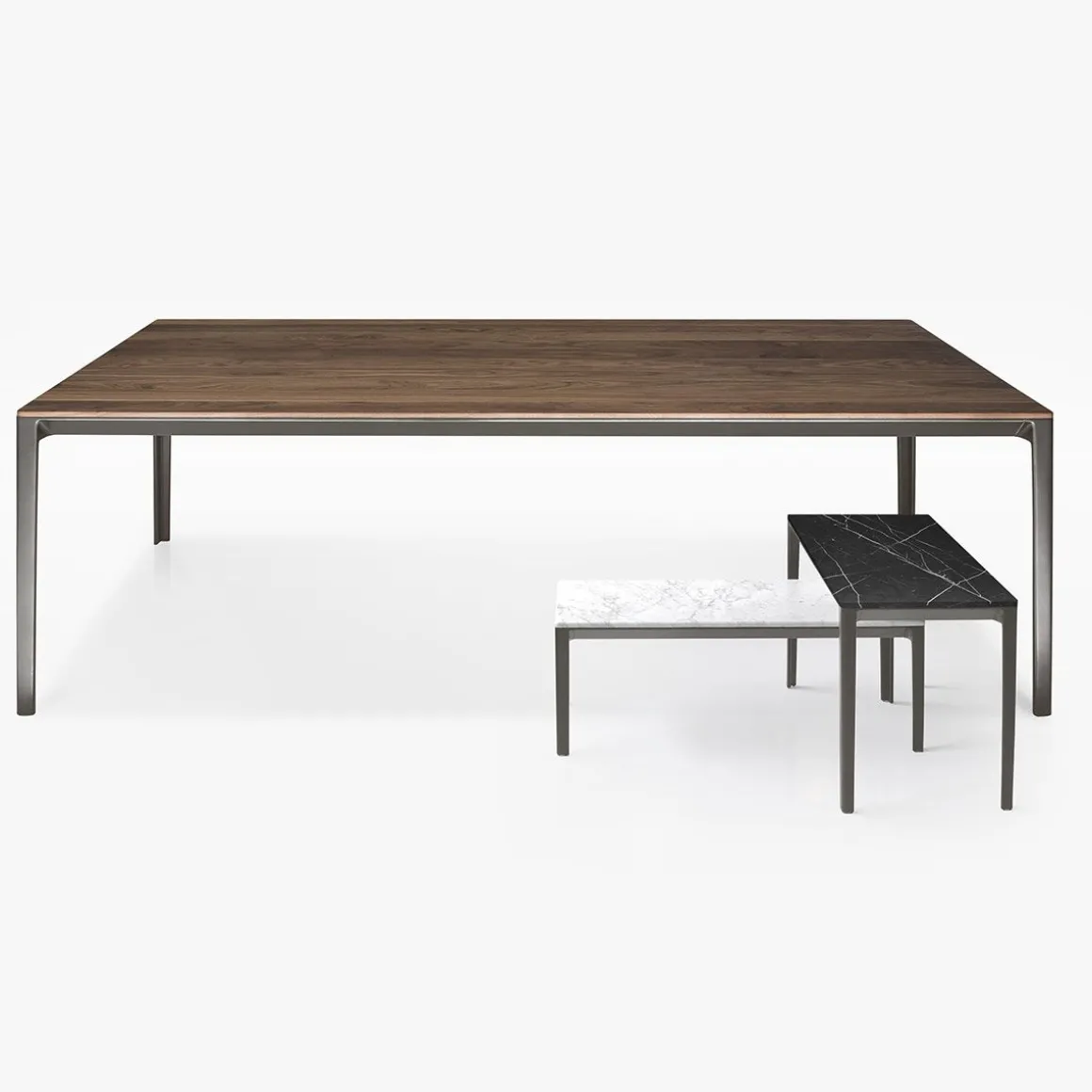 La table Able est une famille de tables. Les tables offrent une variété de solutions en termes de taille et de matériaux en utilisant des pieds en fonte d’aluminium et des rails en aluminium pour soutenir les plateaux en bois, marbre et Polaris. La polyvalence emmène les Ables partout dans la maison : salle à manger, salon, chambre à coucher et éventuellement à l’extérieur… Le fin bord biseauté ajoute de la légèreté visuelle, tandis que le cadre en aluminium donne de la solidité. Le cadre est disponible en graphite et est extrêmement léger.