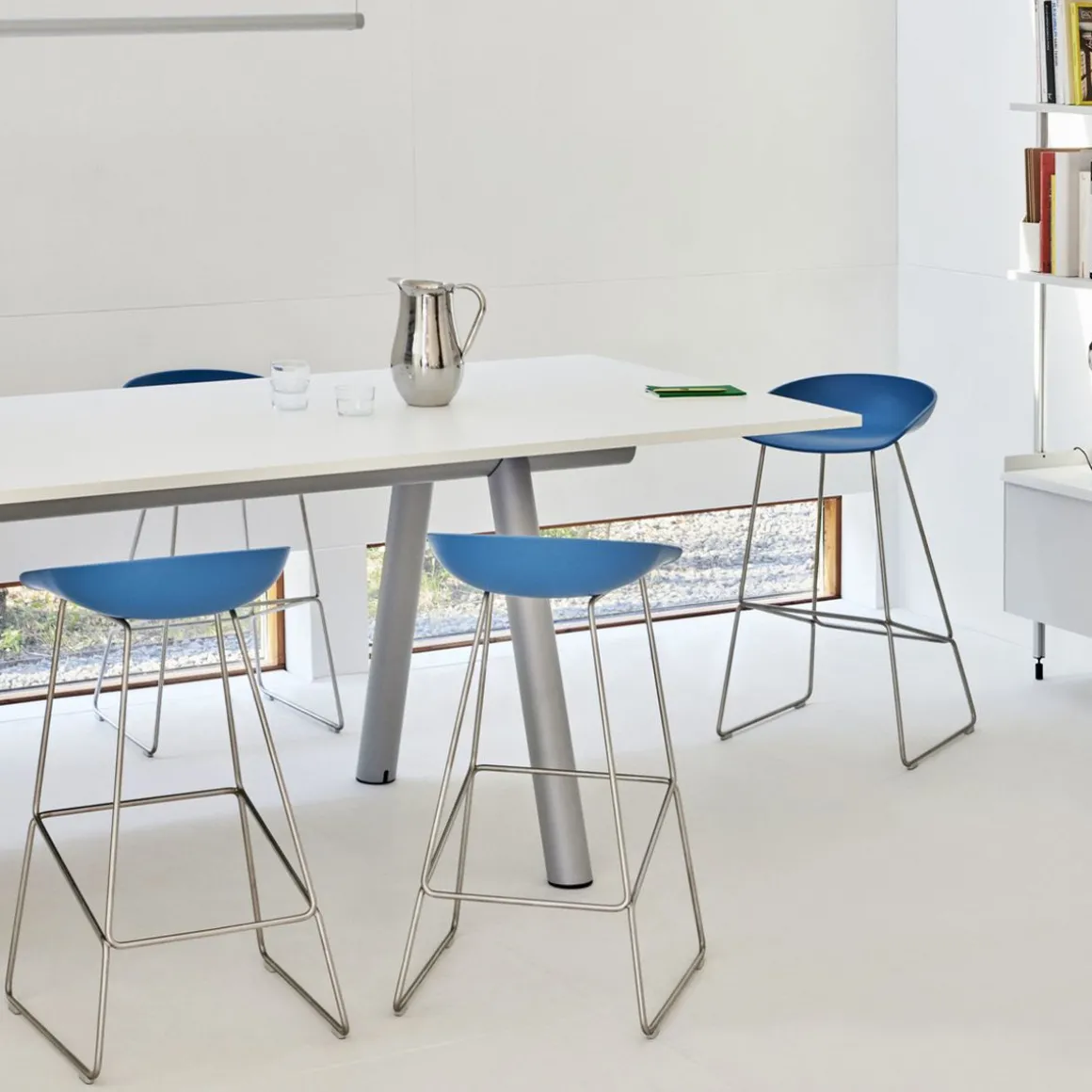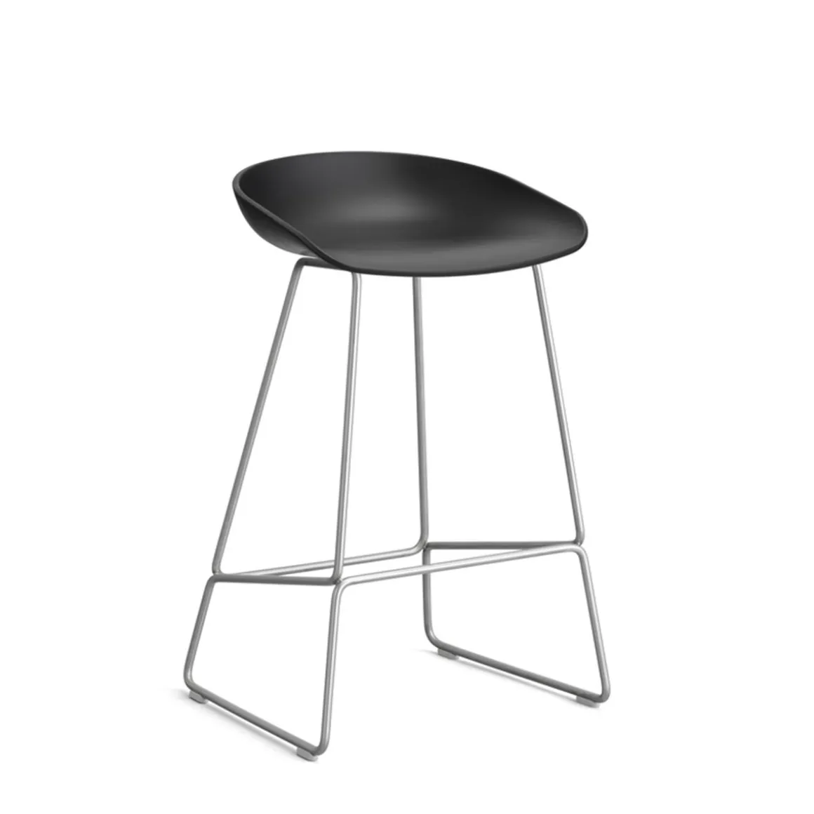 Le dossier incurvé de AAS 38 est équilibré sur une élegante structure arrondie en métal, présentant un design plus industriel avec une forte présence visuelle. Convient aussi bien comme tabouret de bar dans les bars et restaurants qu’à la maison pour des repas informels.