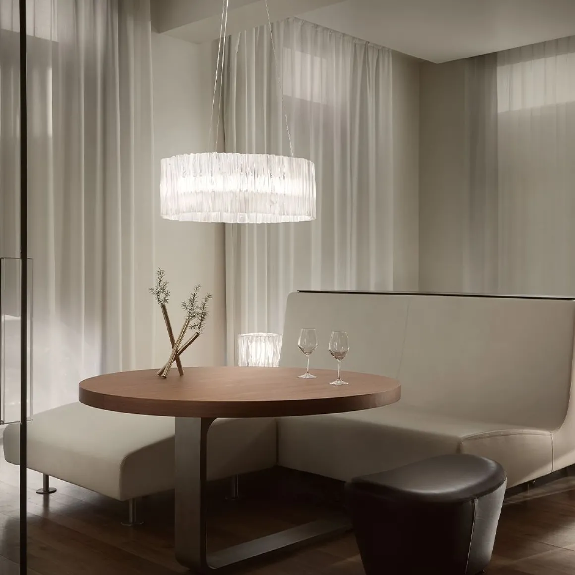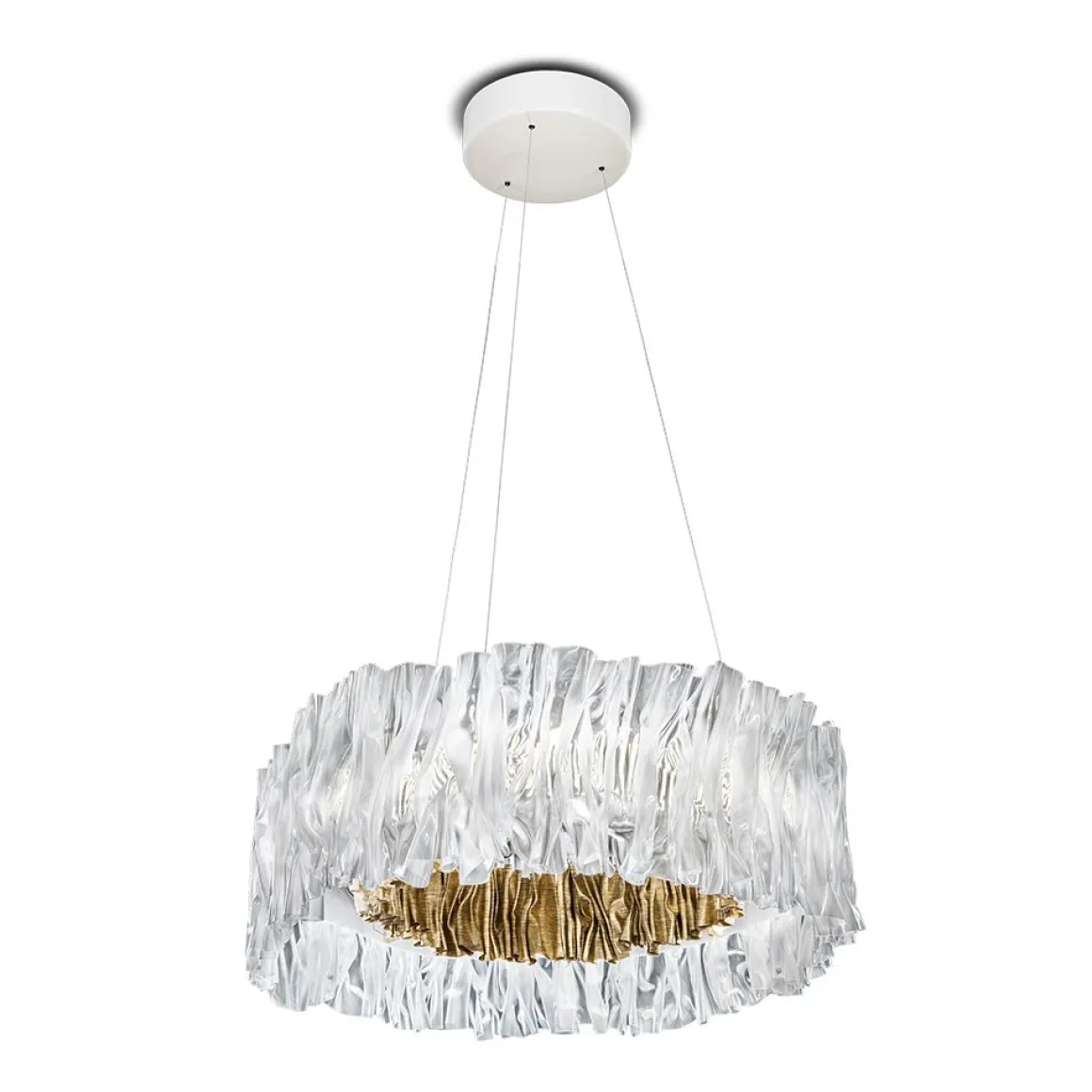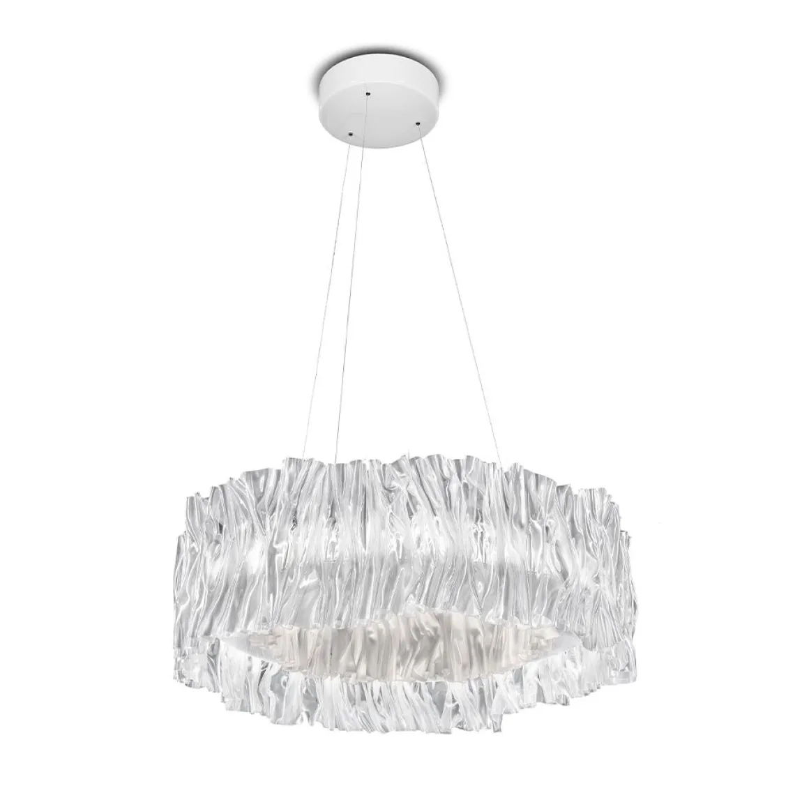 De l’exploration de Marc Sadler sur les possibilités infinies qu’offrent les technopolymères de Slamp, est née Accordéon. Qu’elle éveille le souvenir du plissé d’un tissu ou le soufflet d’un accordéon, cette collection marque pleinement l’ouverture d’une nouvelle page de l’histoire contemporaine, dans lequel design, mode, artisanat et technologie avancent main dans la main en une alliance indissoluble. La corolle de LED – 2700 ou 3000 Kelvin selon les exigences – atteint 5700 lumen et complètement graduable.