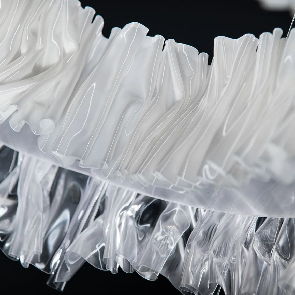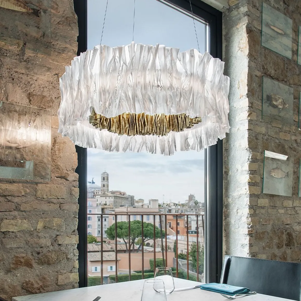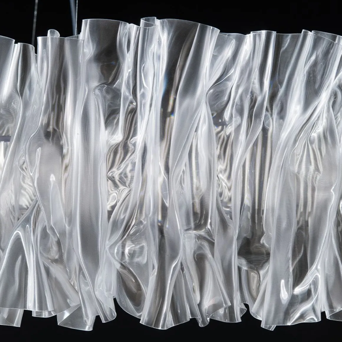 De l’exploration de Marc Sadler sur les possibilités infinies qu’offrent les technopolymères de Slamp, est née Accordéon. Qu’elle éveille le souvenir du plissé d’un tissu ou le soufflet d’un accordéon, cette collection marque pleinement l’ouverture d’une nouvelle page de l’histoire contemporaine, dans lequel design, mode, artisanat et technologie avancent main dans la main en une alliance indissoluble. La corolle de LED – 2700 ou 3000 Kelvin selon les exigences – atteint 5700 lumen et complètement graduable.