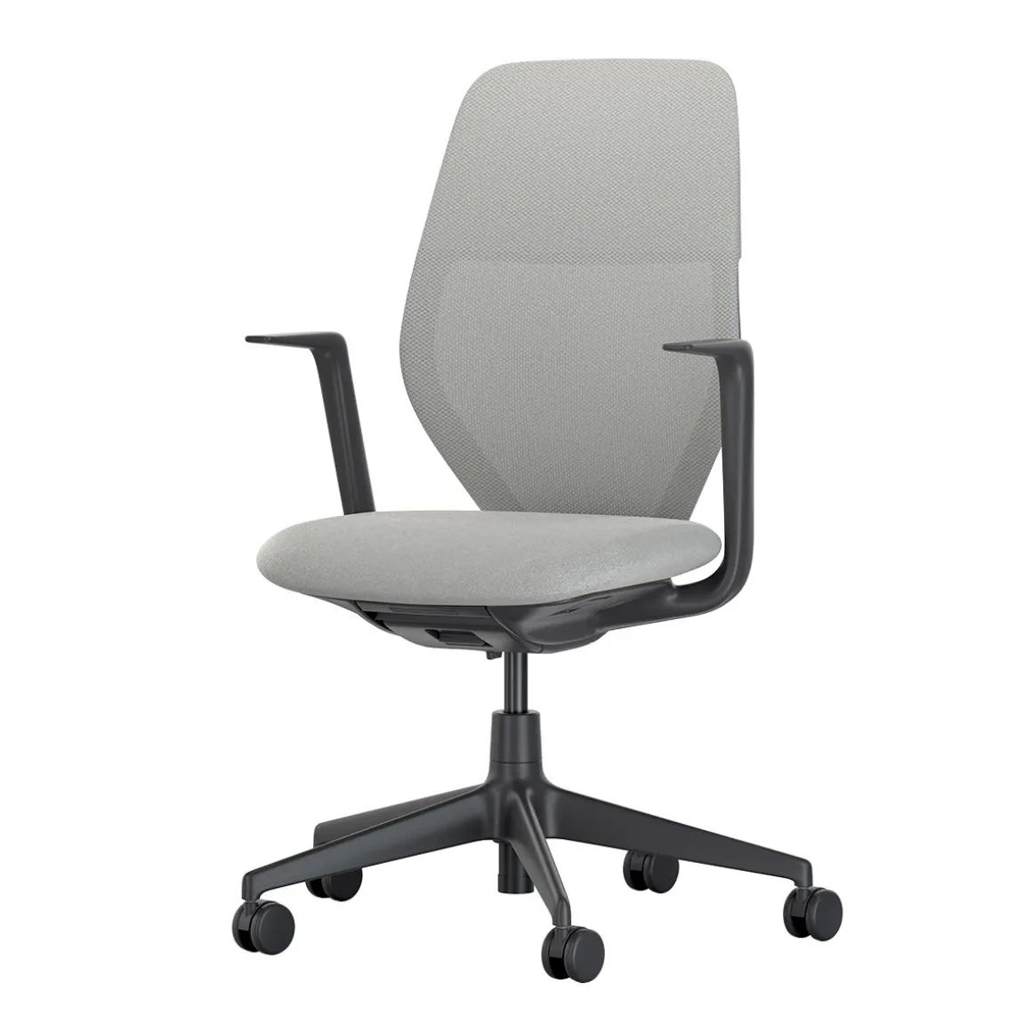 Piètement : piètement à cinq branches en polyamide noir foncé ou soft grey (assorti à la couleur du cadre), avec roulettes doubles (Ø 60 mm).