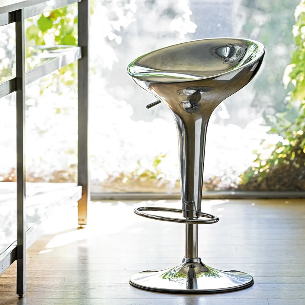 Matériaux : colonne en acier inoxydable et assise en fonte d’aluminium poli