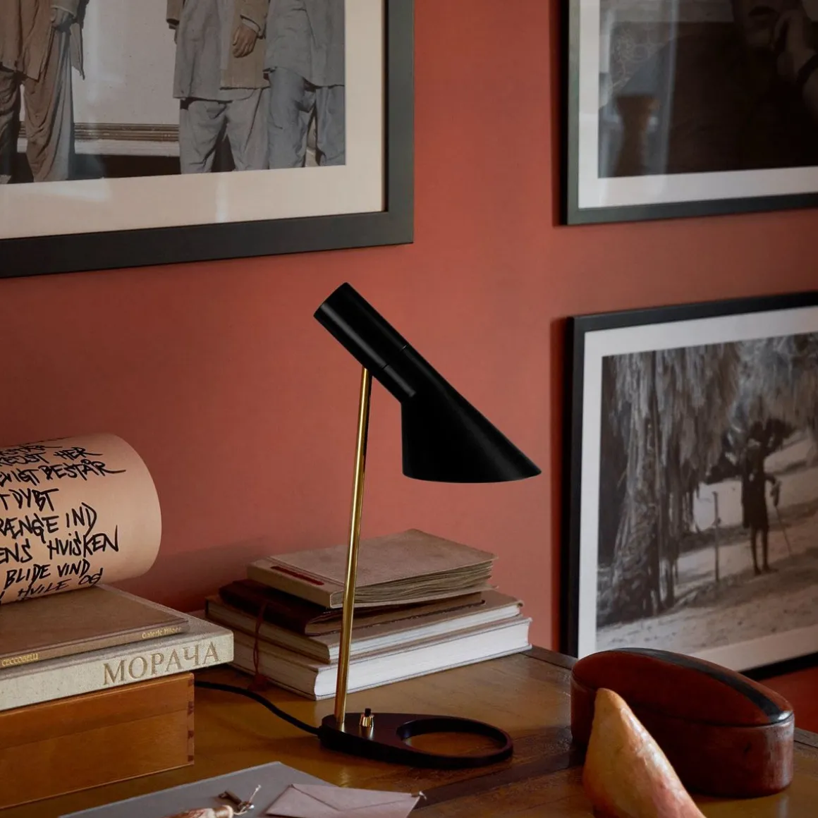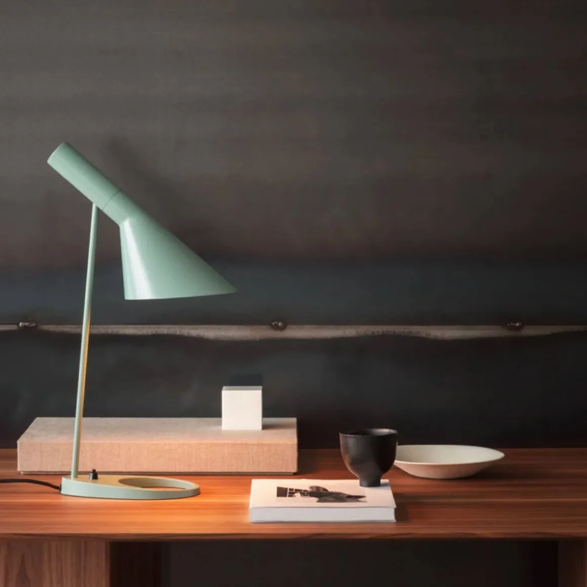 Le luminaire AJ émet une lumière dirigée vers le bas. L’angle de l’abat-jour peut être modifié afin d’optimiser l’éclairage. L’intérieur de l’abat-jour est peint en blanc afin de rendre la lumière plus douce et confortable.