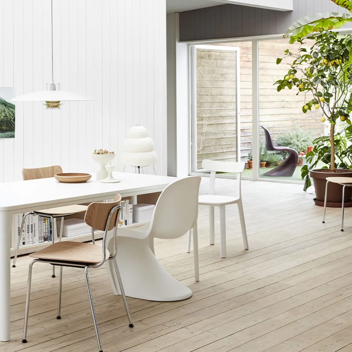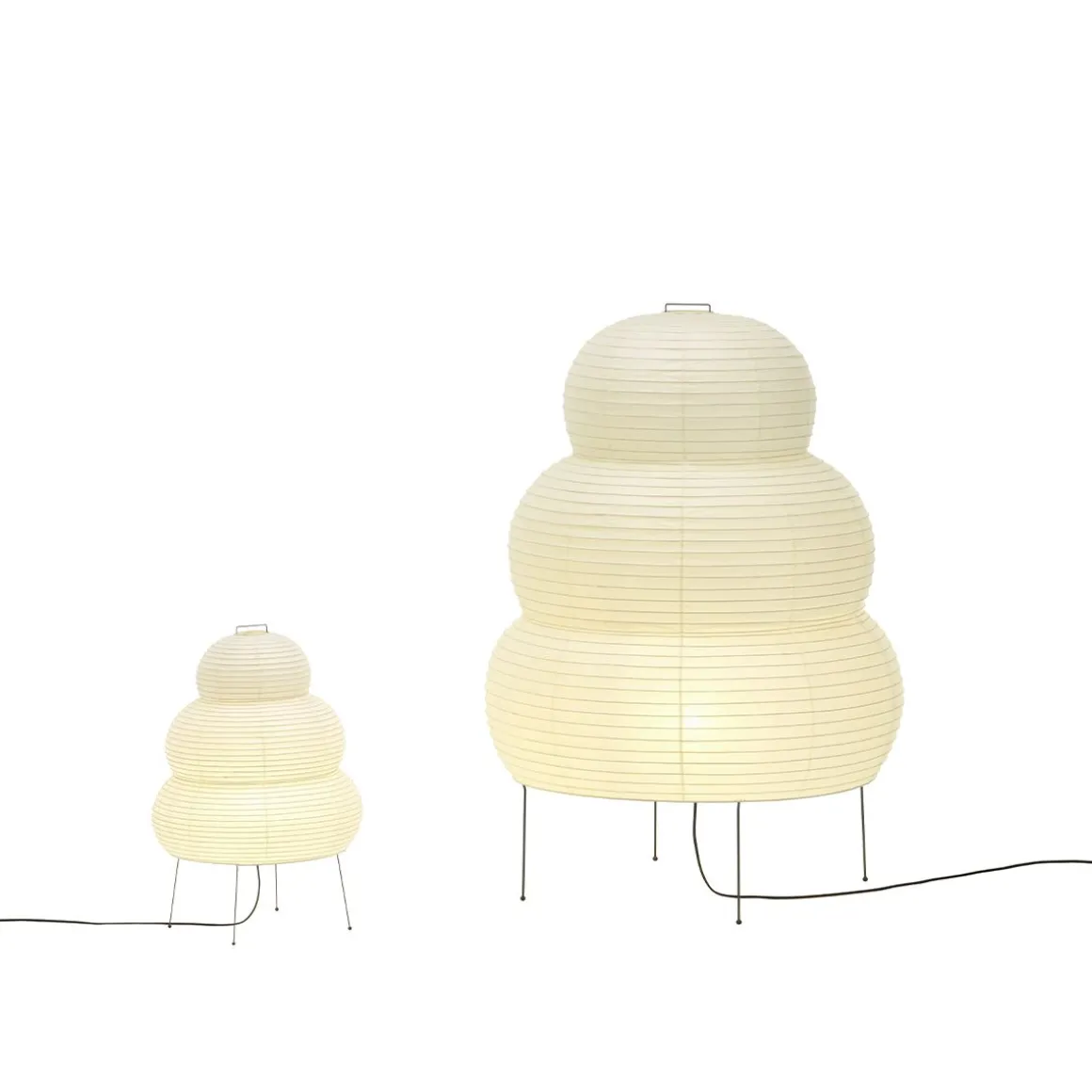 Les Akari Light Sculptures (1951) d’Isamu Noguchi (1951) sont une série de luminaires faits main en papier washi traditionnel par des artisans japonais. « La magie du papier retransforme l’électricité froide en la lumière originelle – le soleil. » (Noguchi)