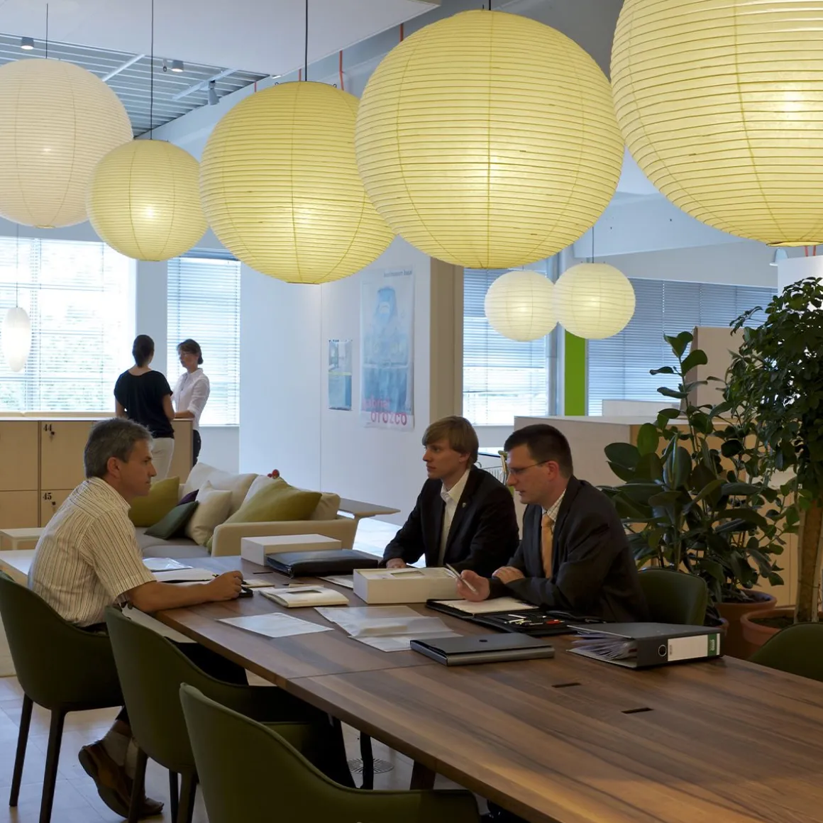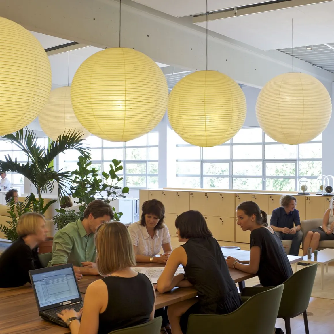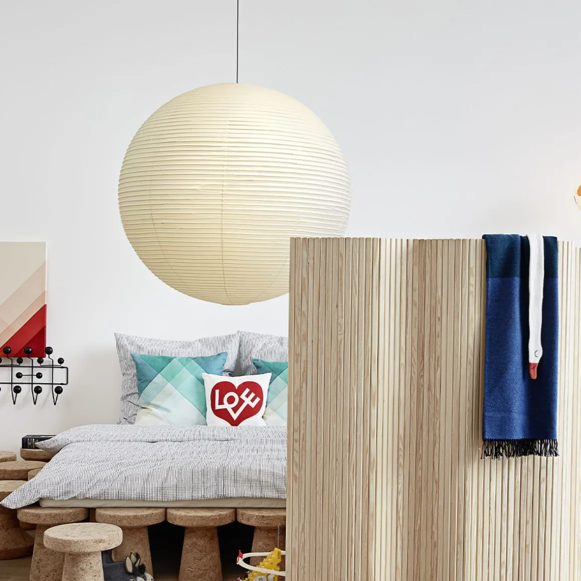 Les Akari Light Sculptures (1951) d’Isamu Noguchi (1951) sont une série de luminaires faits main en papier washi traditionnel par des artisans japonais. « La magie du papier retransforme l’électricité froide en la lumière originelle – le soleil. » (Noguchi)