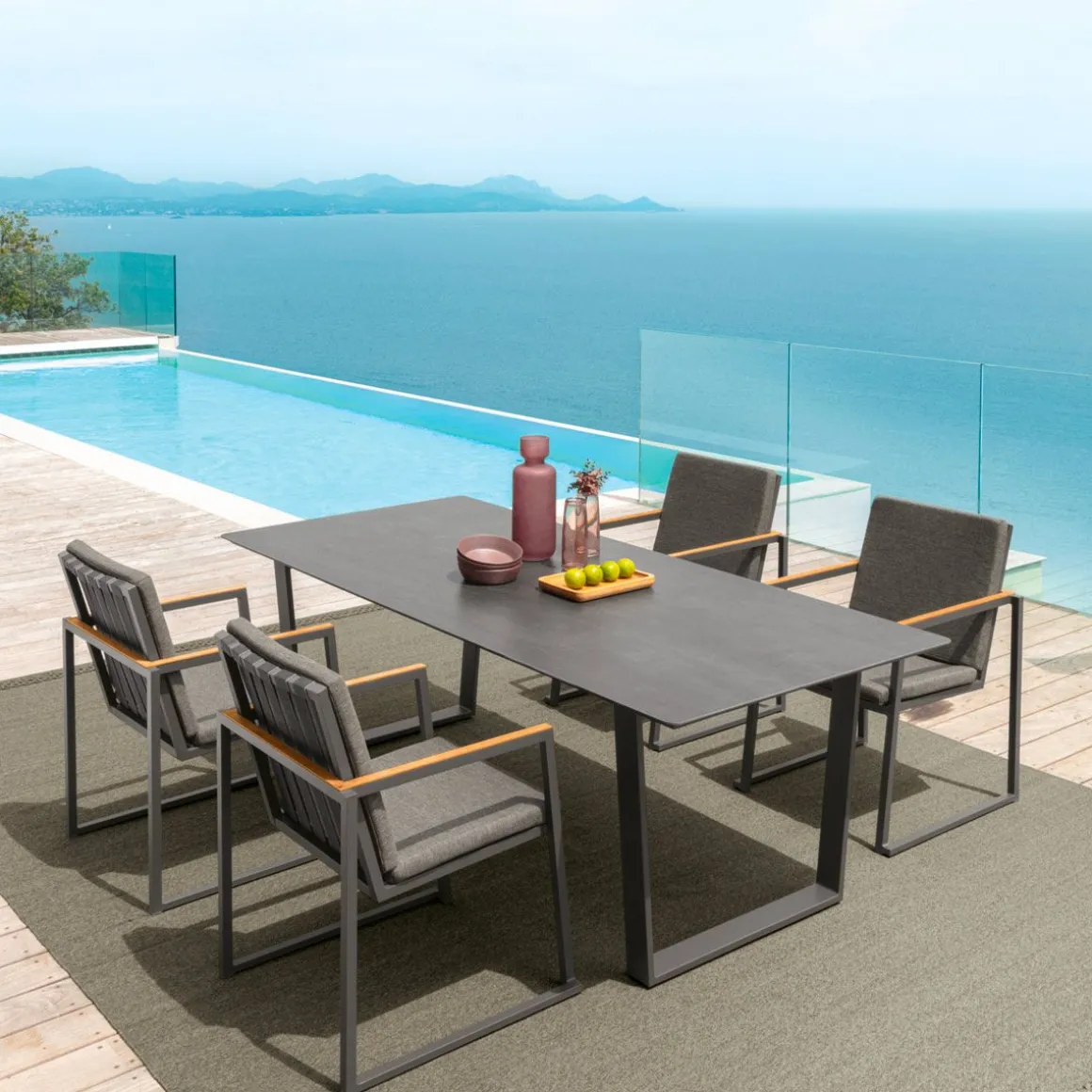 Associant parfaitement aluminium et bois, le fauteuil de repas de la collection AlabamaAlu est simple sans être banal. L’assise confortable en mousse quick dry foam, revêtue de tissu facilement déhoussable et lavable, est soutenue par des sangles élastiques synthétiques, spécialement réalisées pour les extérieurs. Empilable et léger, ce fauteuil est idéal pour compléter une zone repas de jardin.