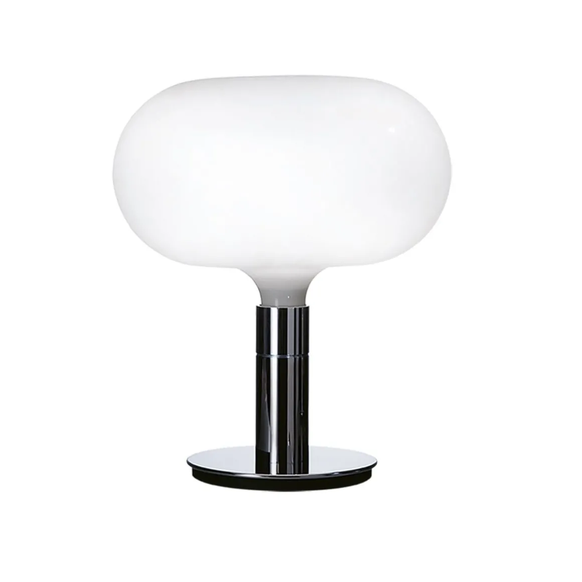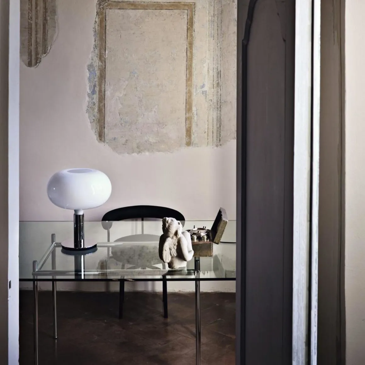 La collection Albini AM/AS représente la philosophie rationaliste de l’architecte milanais. Un design 1969 qui combine les formes linéaires avec l’extrême qualité des matériaux utilisés, comme le verre soufflé des diffuseurs. Le but est de gérer les différents volumes de l’espace avec un seul design : plafond, mur, sol et table.