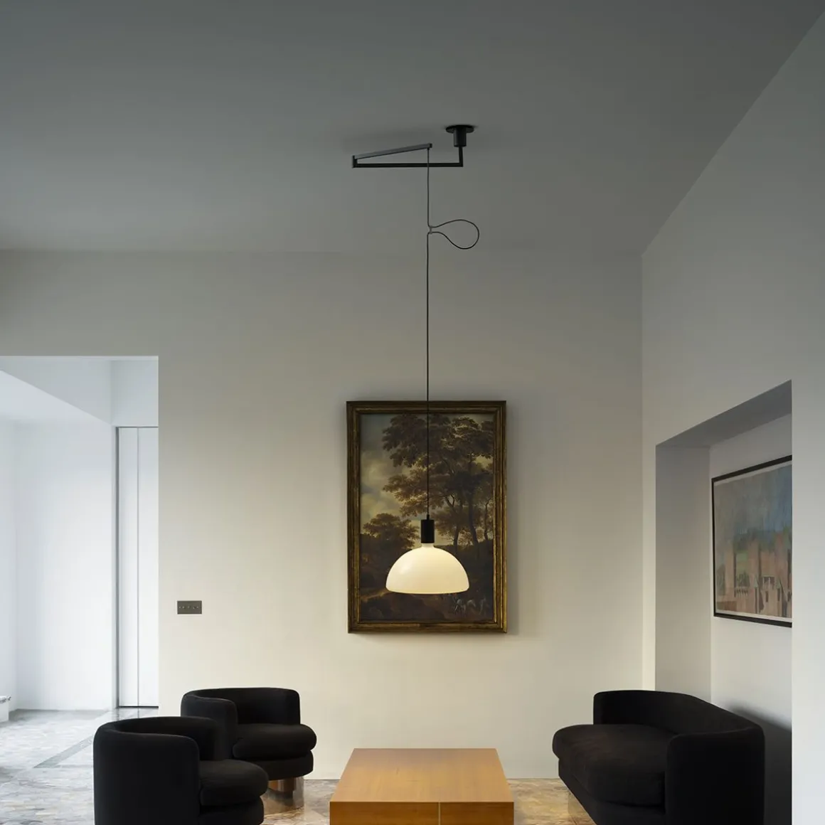 La collection Albini AM/AS représente la philosophie rationaliste de l’architecte milanais. Un design 1969 qui combine les formes linéaires avec l’extrême qualité des matériaux utilisés, comme le verre soufflé des diffuseurs. Le but est de gérer les différents volumes de l’espace avec un seul design : plafond, mur, sol et table.