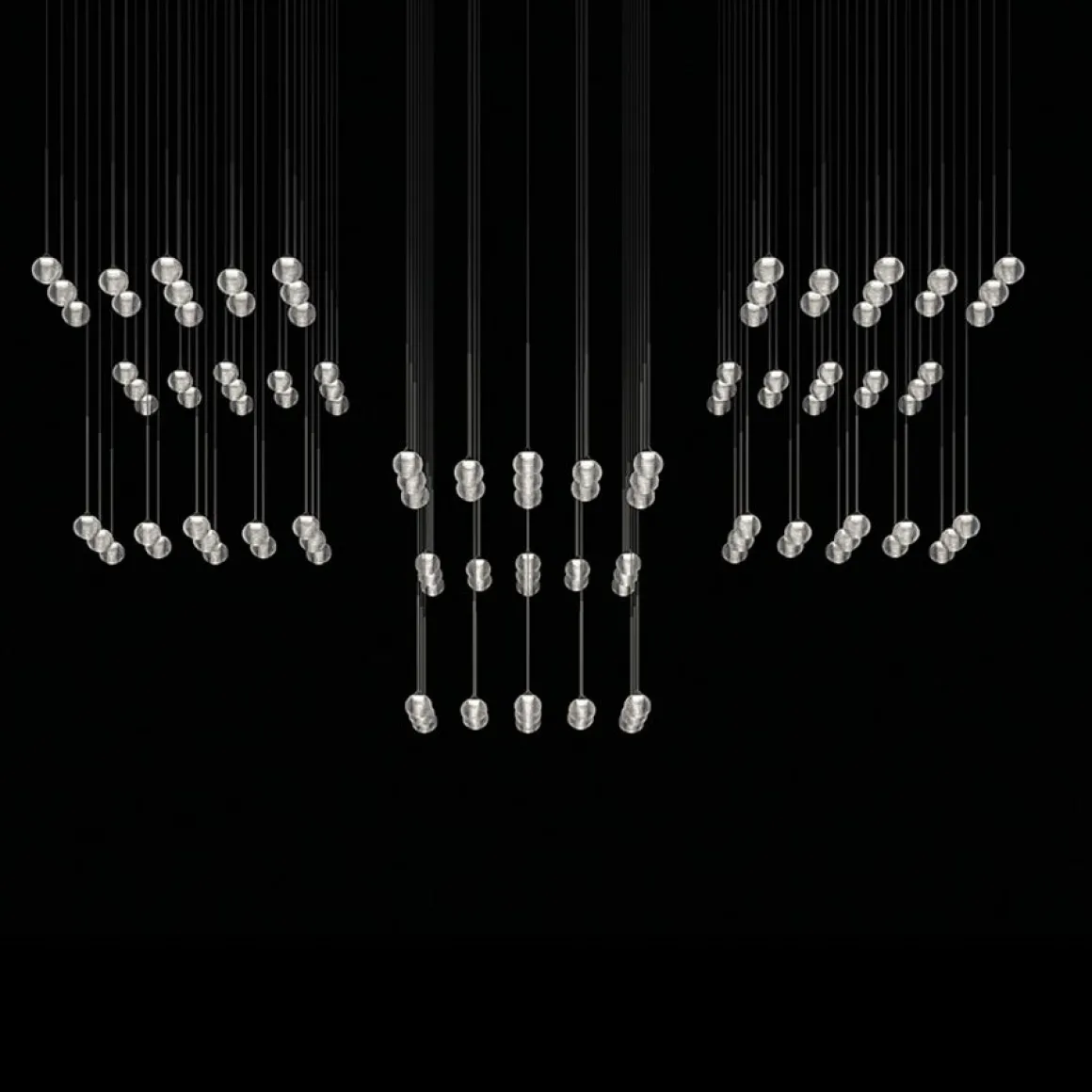 Suspension signée Toan Nguyen. Composée d’un globe en verre soufflé à source LED, suspendu au plafond au moyen d’un câble porteur. Disponible en finition laquée graphite mat. Toan Nguyen a imaginé les lampes Algorithm, une collection qui marie beauté et géométrie dans un système d’éclairage aux effets magiques. Ce système de lampes suspendues proposé par Vibia permet à l’utilisateur de choisir entre différentes références prédéfinies, ou de créer sa propre configuration pour l’adapter au mieux à l’espace. La collection Algorithm se présente sous la forme d’un ensemble de sphères lumineuses LED suspendues à différentes hauteurs et fixées au plafond au moyen d’une structure tubulaire flottante. Rappelant des gouttes d’eau tombant du ciel, ces suspensions sont un réel outil pour exprimer votre créativité à travers des constructions diverses, que vous adapterez vous-même à votre intérieur.