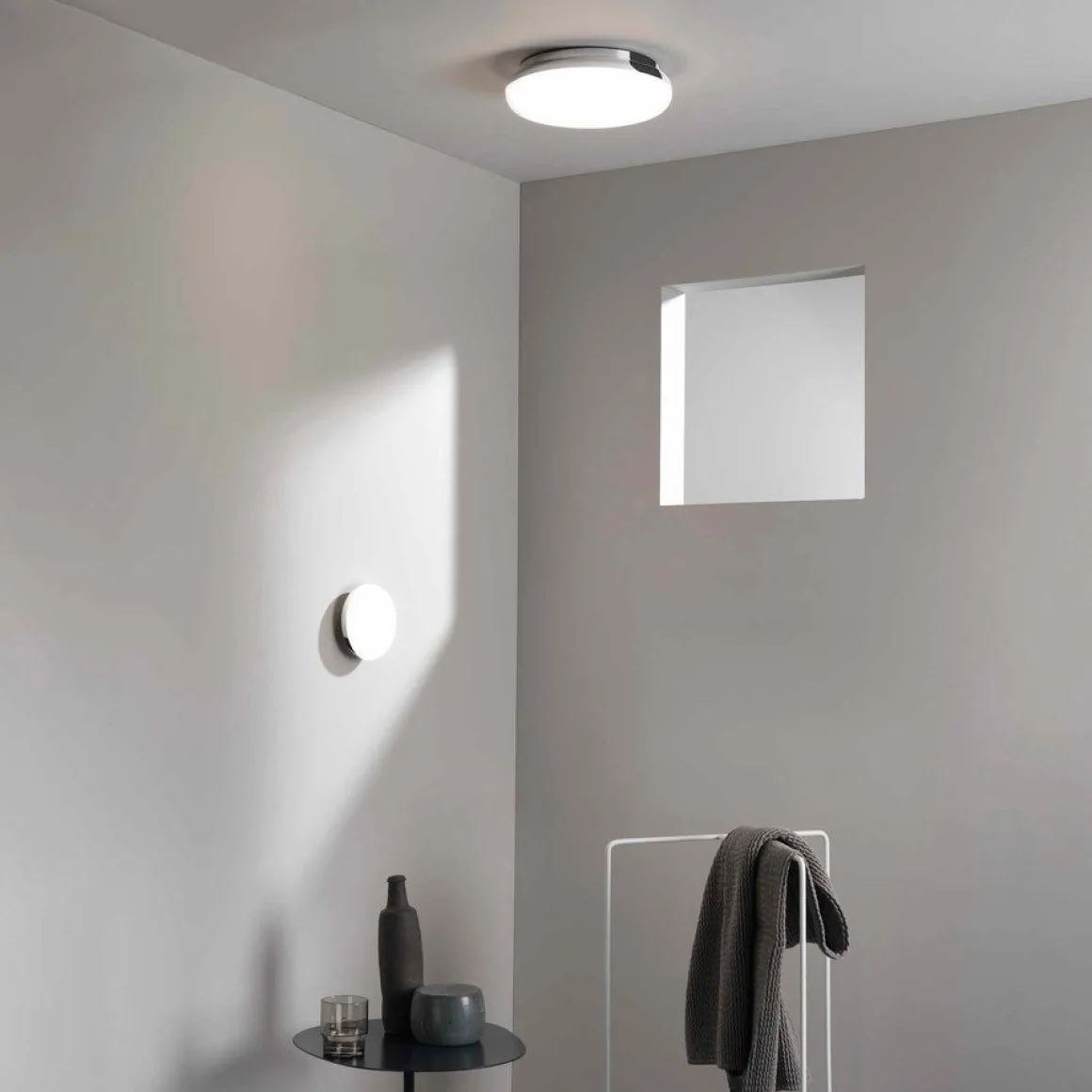 Plafonnier Altea de Astro, avec finition chromée. Il convient pour les salles de bains grâce à sa protection IP44 et à sa double isolation.