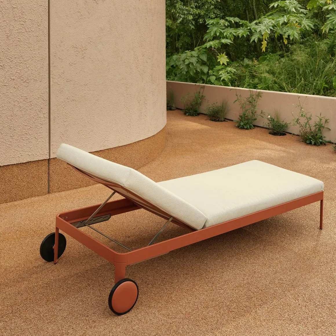 Matériaux : Aluminium thermolaqué, lattes en plastique, tissu Heritage Papyrus