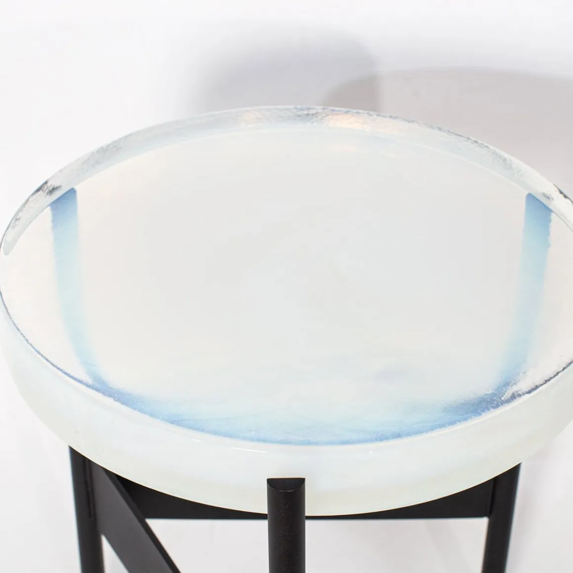 Alwa two de Pulpo par Sebastian Herkner. En général, le verre est considéré comme un matériau léger aux arêtes vives. En revanche, l’alwa de Sebastian Herkner est massif et possède des contours doux. La masse de verre brute et chaude avec ses bulles naturelles est une empreinte de la structure, y compris la surface irrégulière et sensible. Si agréable au toucher… mais également idéal pour y placer divers objets.