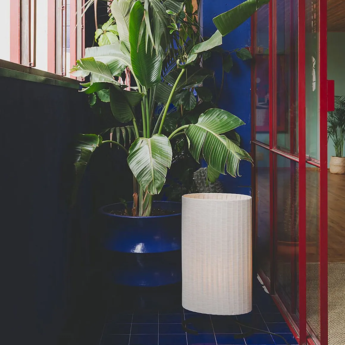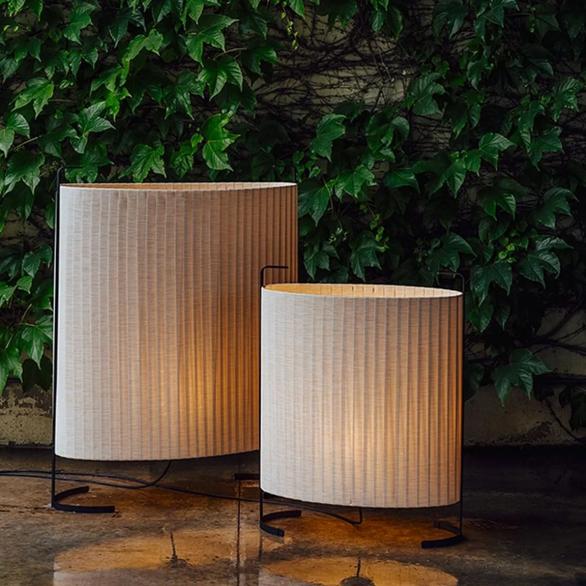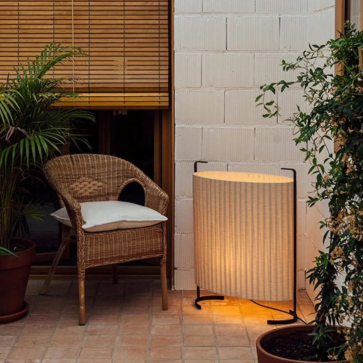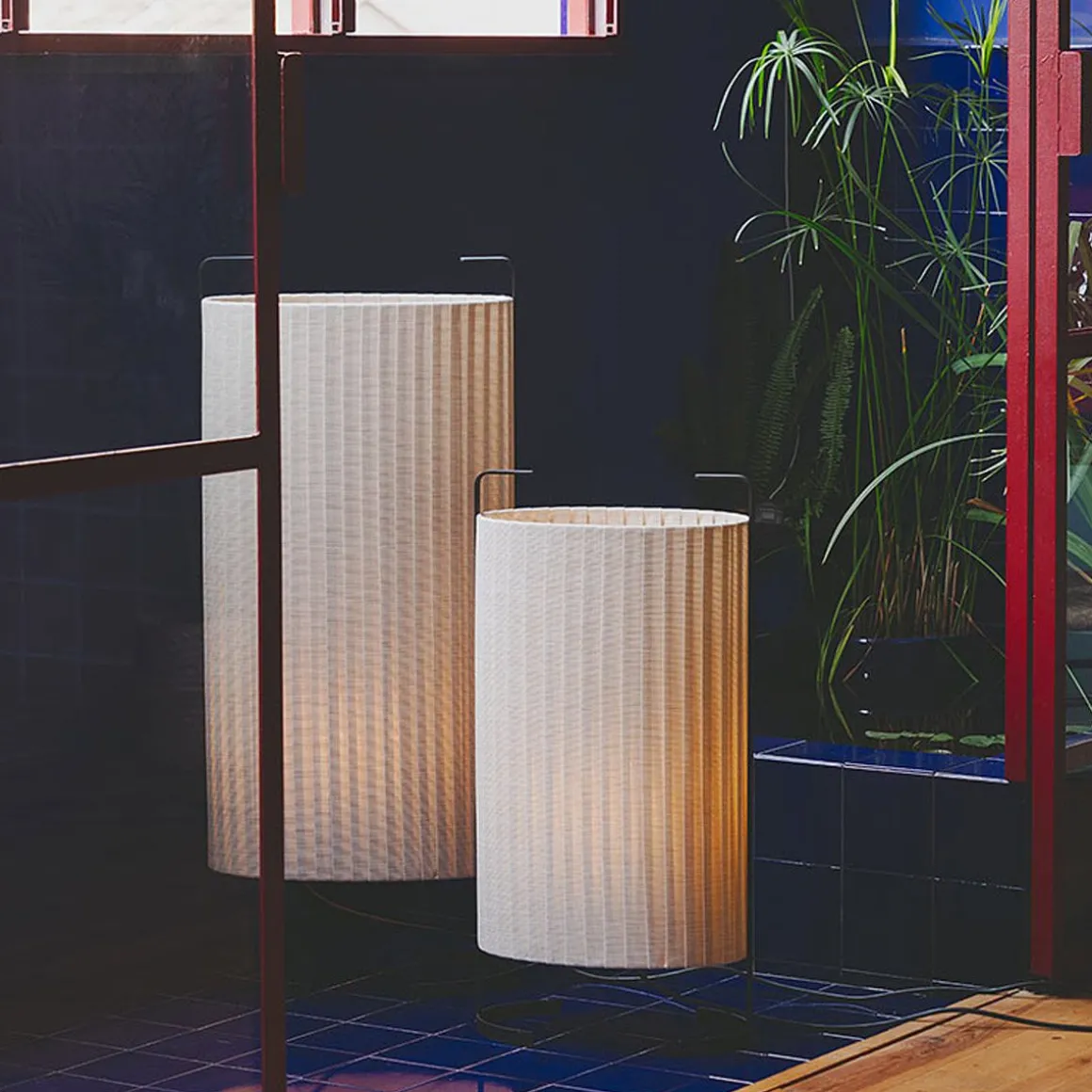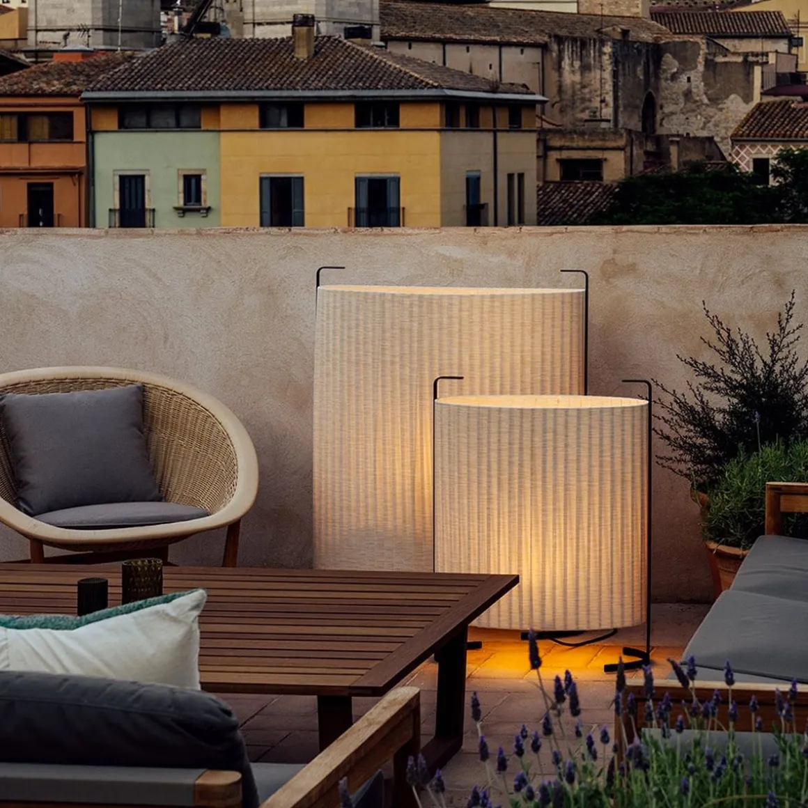 Il est né de l’idée de séparer et de générer différents environnements dans un même espace en utilisant la lumière, comme s’il s’agissait d’un écran, créant une atmosphère chaleureuse et intime, propice au dialogue. Le halo de lumière est chaleureux et délicat, idéal pour ce type d’environnement. Il est composé de matériaux adaptés à l’extérieur, comme l’abat-jour en tissu spécial anti-UV, ou la base texturée avec un traitement protecteur, pour faciliter son utilisation aussi bien à l’extérieur qu’à l’intérieur. Il est disponible en deux tailles qui peuvent être combinées entre elles pour générer du rythme.