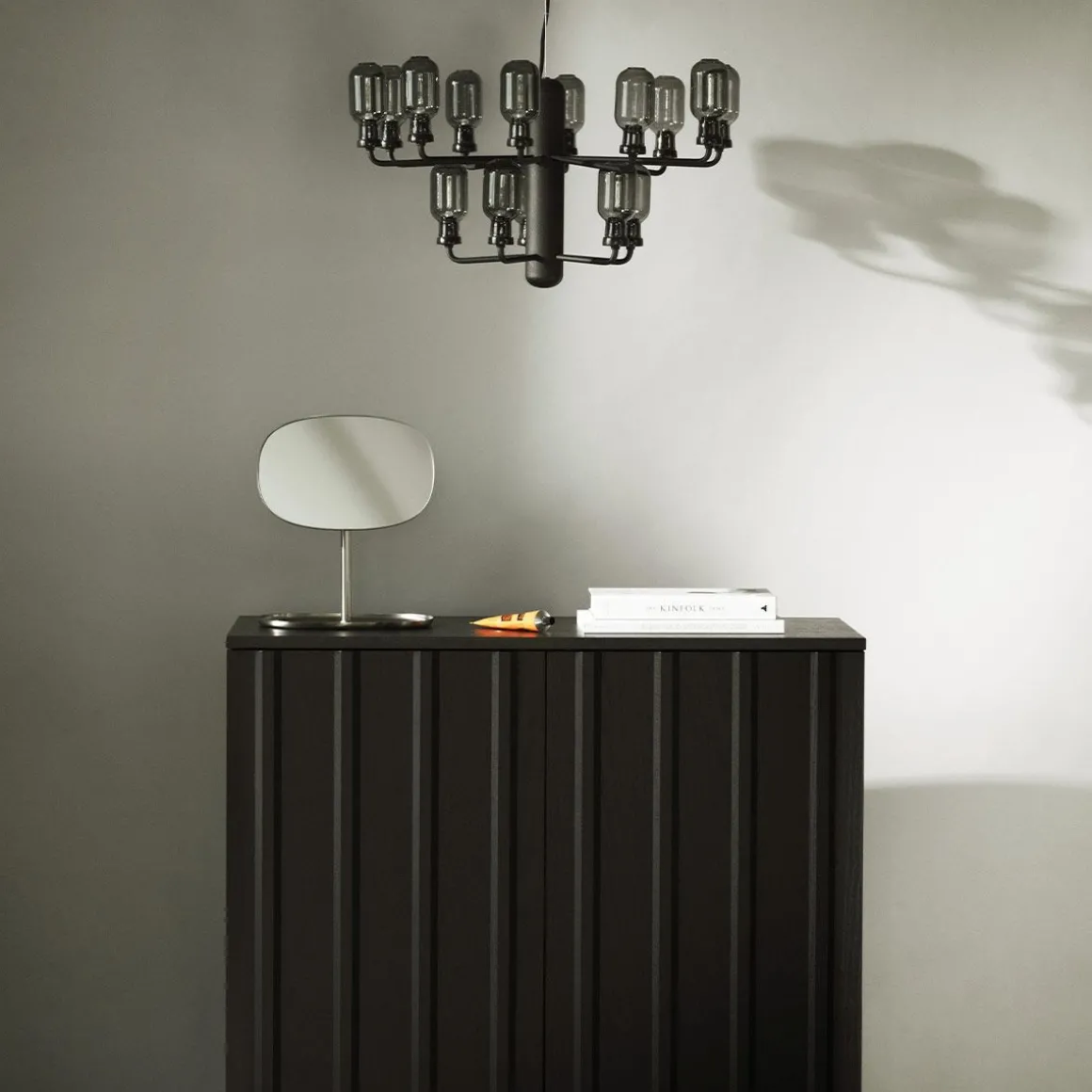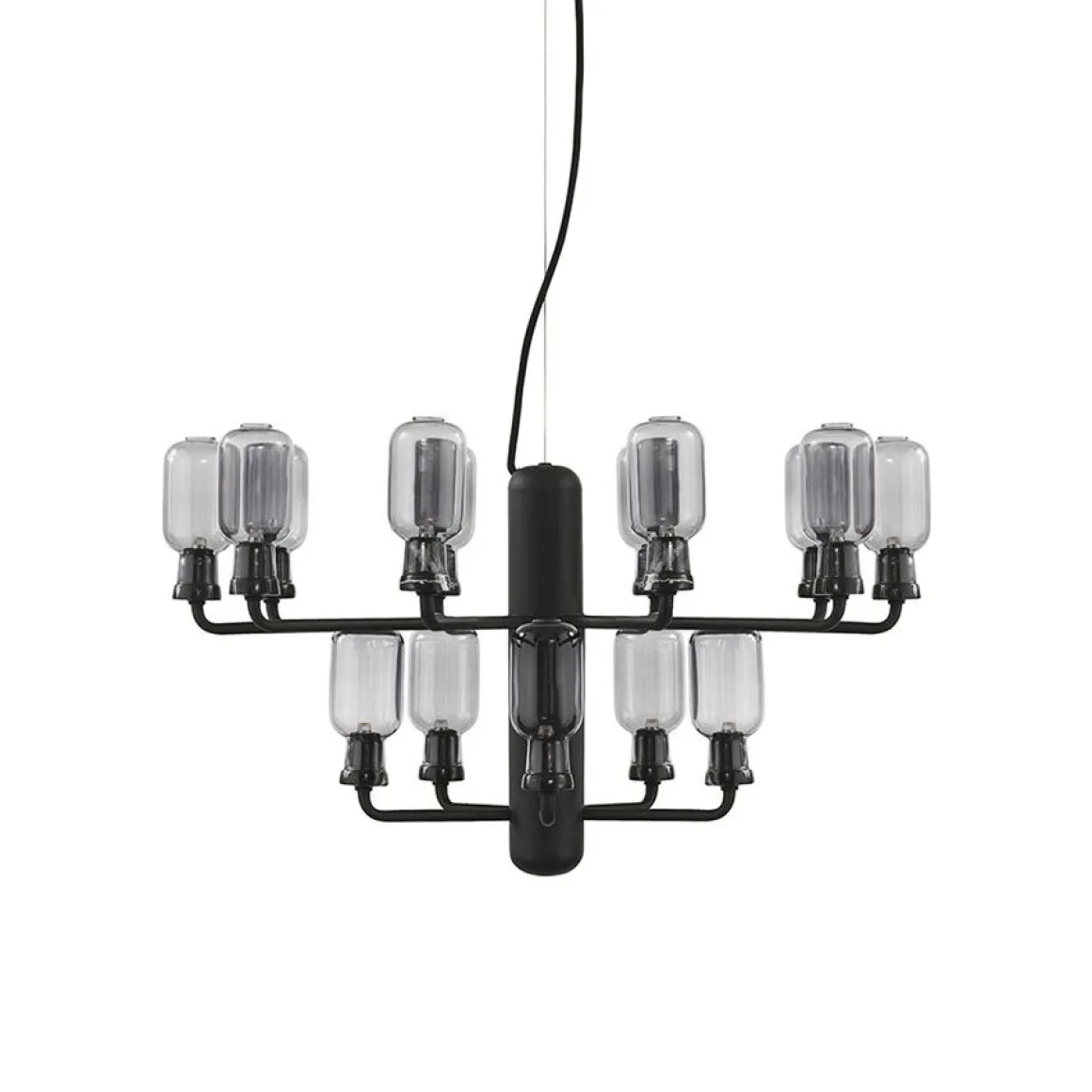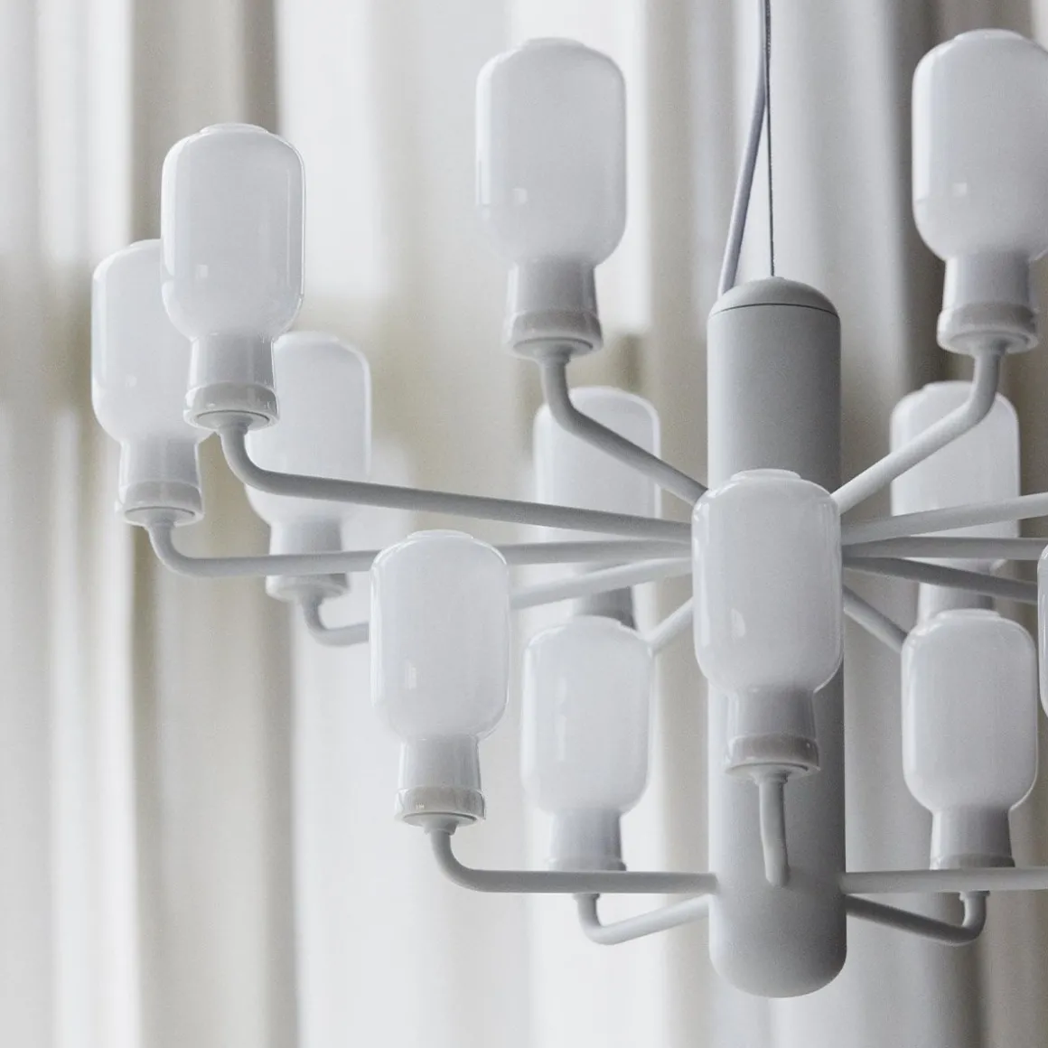 La forme ovale simple et la lueur des lampes Amp sont une référence évidente aux anciens amplificateurs à tubes des années 1960. La lumière chaleureuse et accueillante, qui caractérise également les lustres classiques, combine Amp avec un langage moderne et audacieux, ce qui donne au lustre un sentiment nostalgique et contemporain.