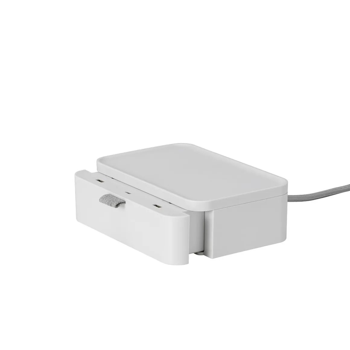 Ampi permet l’alimentation électrique et informatique du poste de travail. En état fermé, il adopte l’apparence d’un objet aux lignes bien conçue, aux proportions harmonieuses, dont la fonction n’est pas visible au premier coup d’oeil. La partie supérieure, avec son bord surélevé, sert de chargeur sans fil pour les smartphones, etc. Un tiroir s’ouvre à l’avant, offrant un accès à deux prises de courant et à deux connexions USB-A, ainsi qu’à une connexion USB-C. Ainsi, toute table de bureau à domicile peut être transformée rapidement en un poste de travail entièrement électrifié. Sur le lieu de travail, Ampi offre la flexibilité indispensable aujourd’hui, sans modification coûteuse de mobilier ni câblage complexe. Ampi est doté d’une base antidérapante et est disponible dans une palette de couleurs. les prises de courant sont adaptées aux normes en vigueur dans les régions concernées.