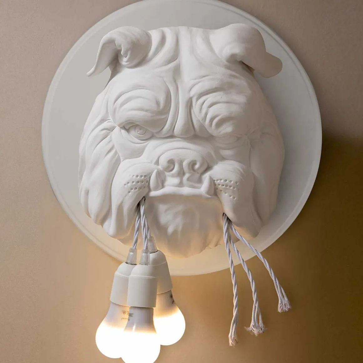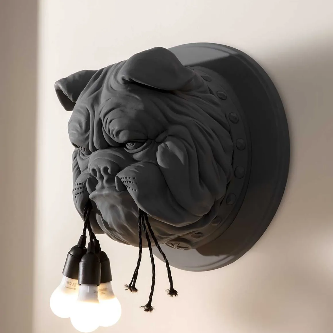 L’applique Amsterdam prend la place qui lui revient dans le fantastique et lumineux « zoo de Karman » : elle s’inspire d’un bulldog qui a trouvé sa place dans la capitale néerlandaise et est devenu célèbre dans le monde entier…
