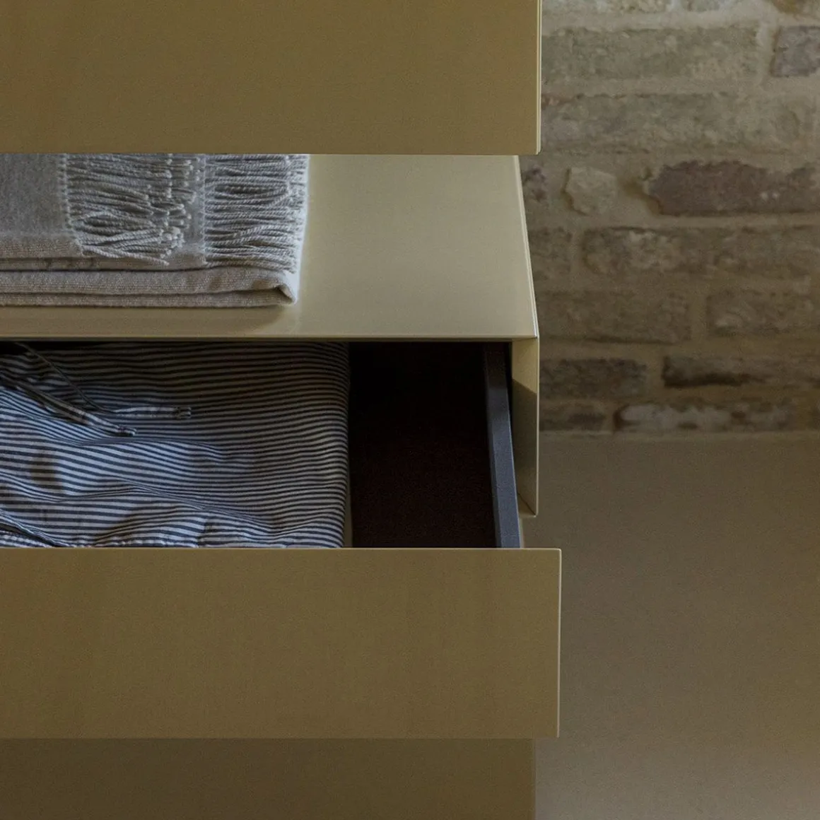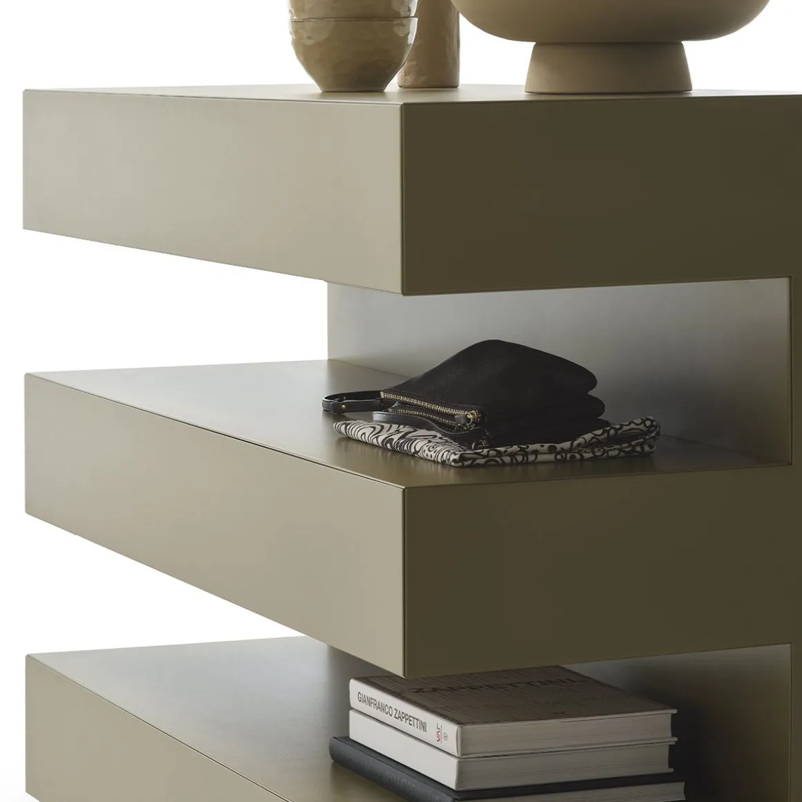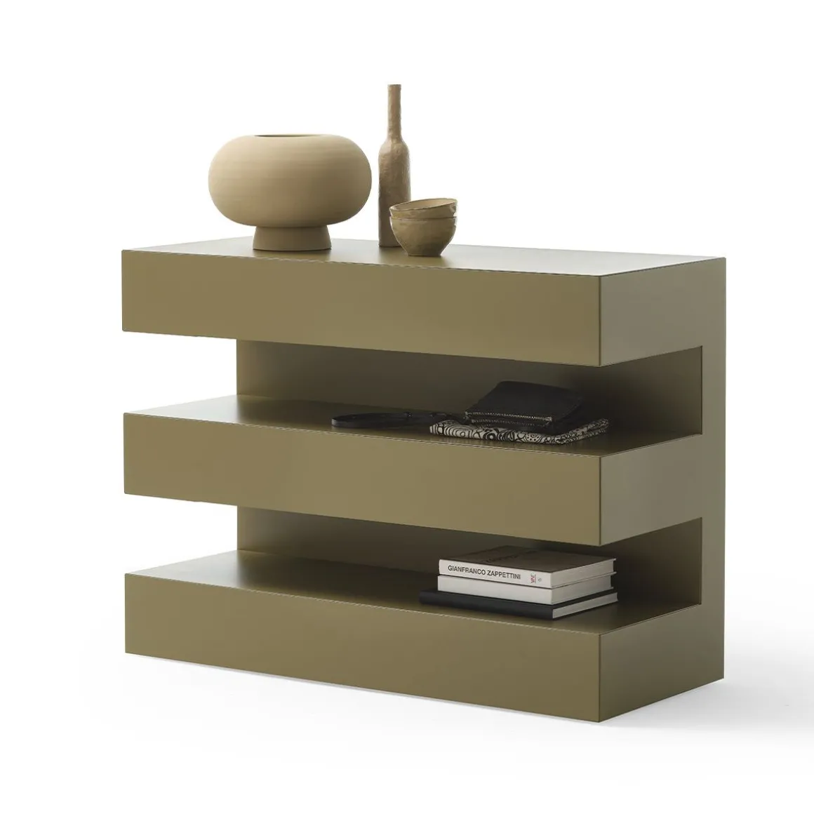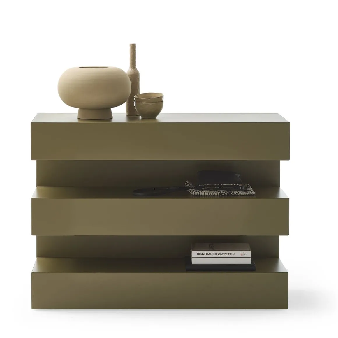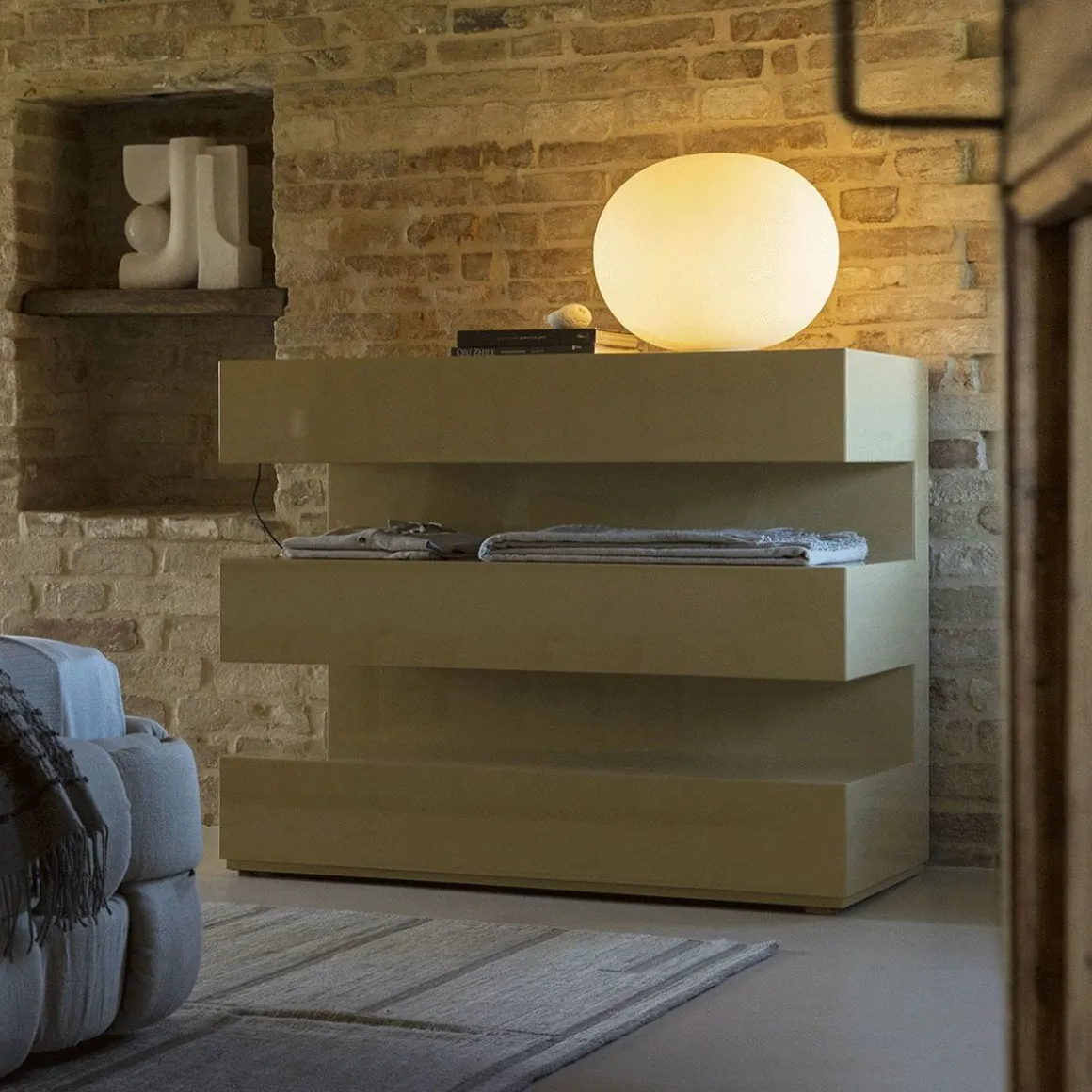 And est une commode et un vaisselier s’adaptant à toutes les ambiances intérieures. Structure en MDF laqué gauffré ou brillant.