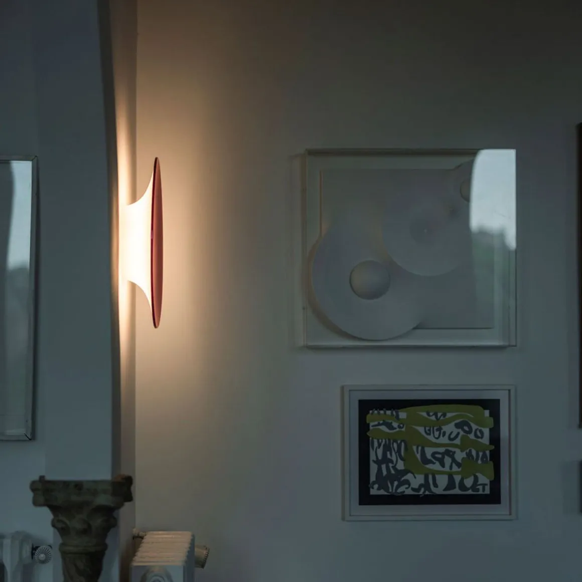 Une éclipse murale où une lumière puissante et fonctionnelle rencontre un impact décoratif saisissant. Anoor transforme les espaces avec sa lueur douce et sa surface réfléchissante qui génère des distorsions anamorphiques.