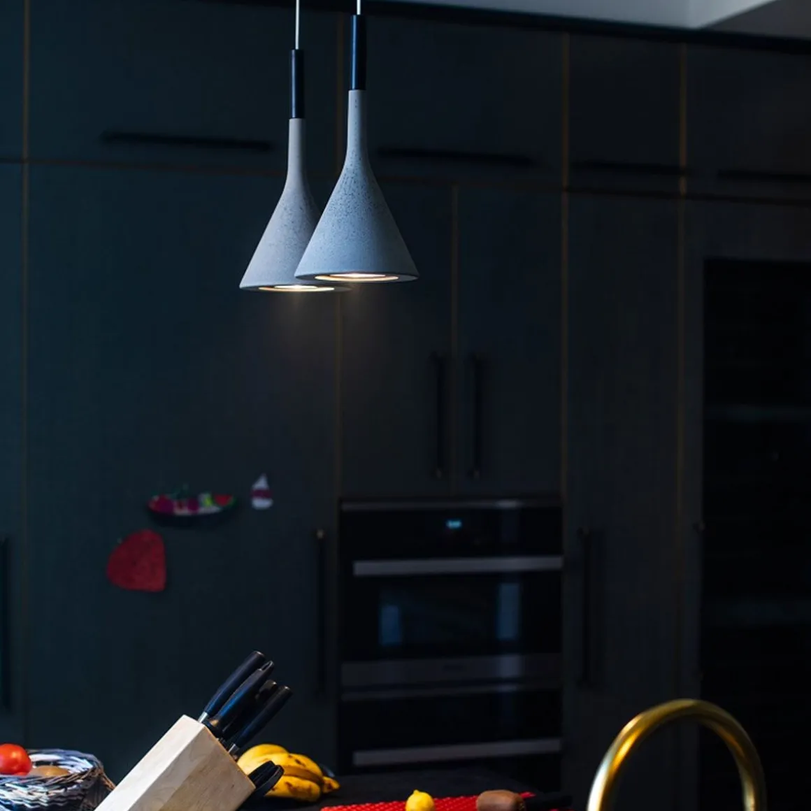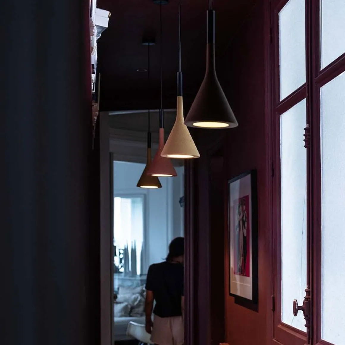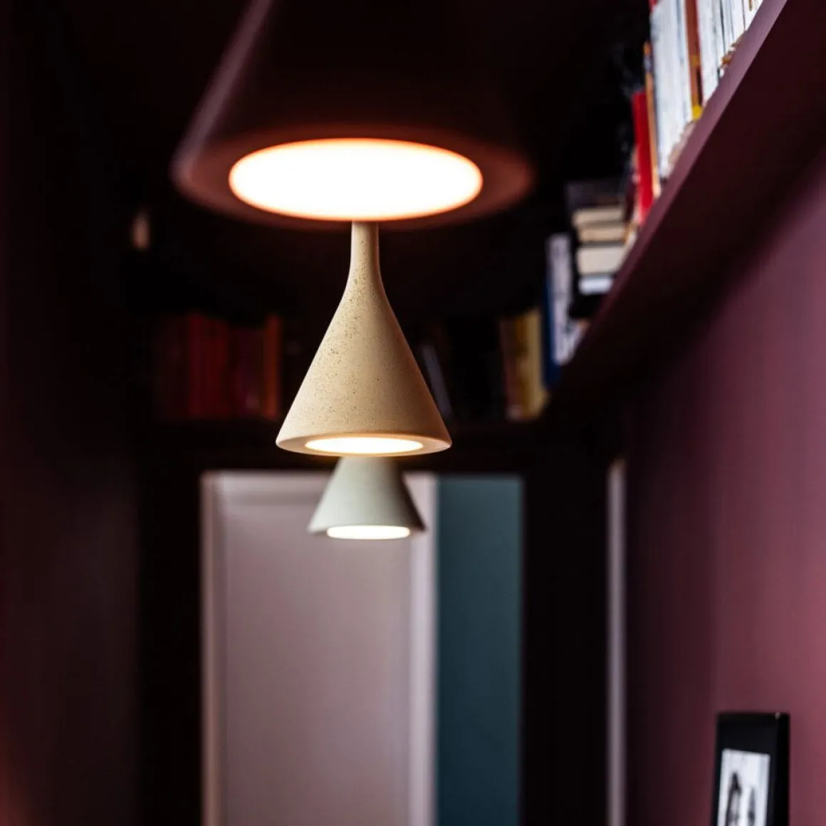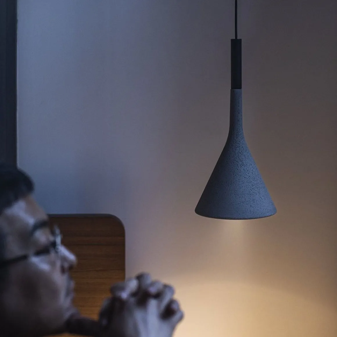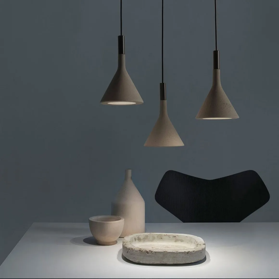 Projetant un faisceau lumineux concentré vers le bas, les suspensions Aplomb mettent en scène un ciment spécial obtenu à partir d’un mélange exclusif : un modèle extrêmement raffiné qui exalte la matière.