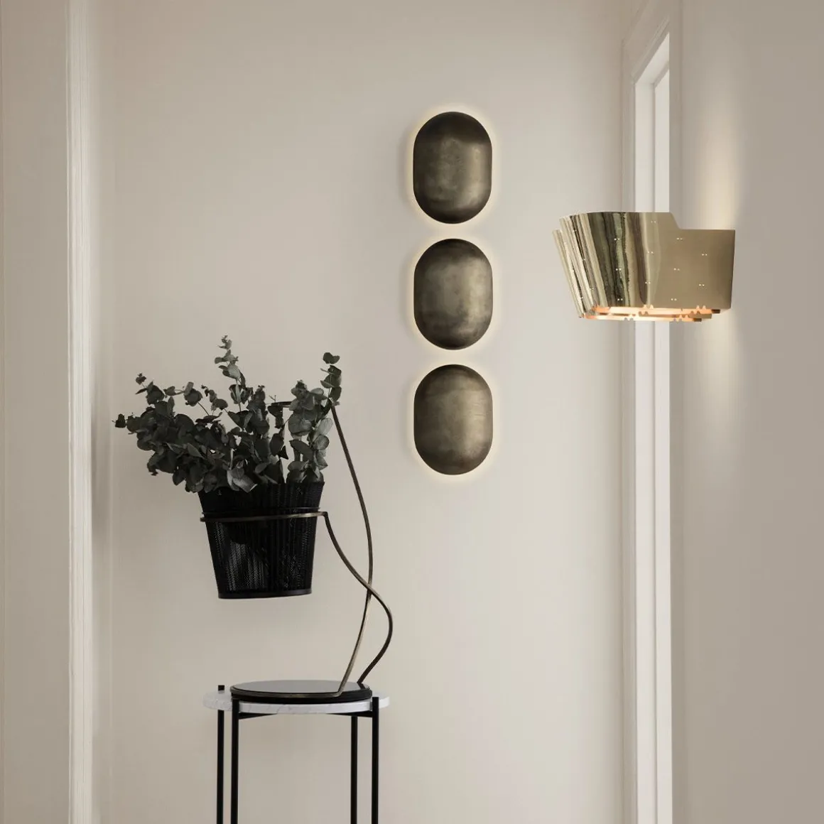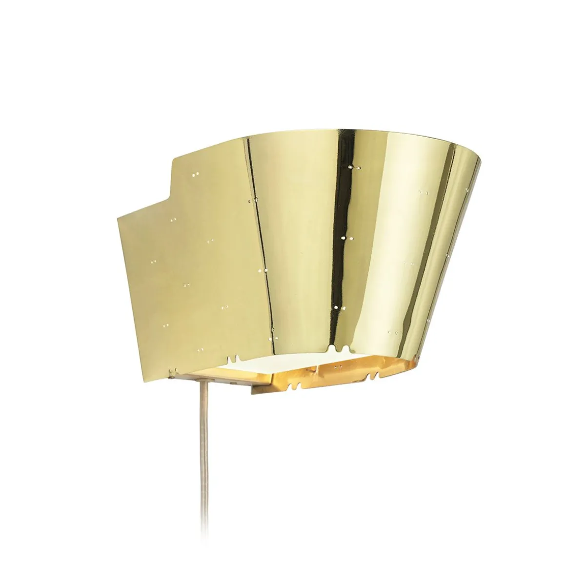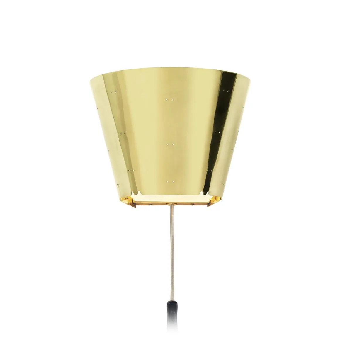 Applique 9464 de Gubi. L’applique murale 9464, conçue en 1947 par Paavo Tynell, illustre parfaitement la manière dont le designer finlandais a élevé l’illumination en une forme artistique. L’abat-jour en laiton sculpté et épuré confère une touche d’élégance aux traits distinctifs de Tynell, à savoir le motif de perforation à double point combiné à des bords entaillés, rendant la lampe murale attrayante et admirable dans toute sa simplicité . Tout aussi pertinente aujourd’hui que lors de sa première apparition, l’applique murale 9464 s’intègre parfaitement dans les intérieurs contemporains, ajoutant un effet sculptural au mur tout en créant un éclairage indirect à la fois relaxant et raffiné.
