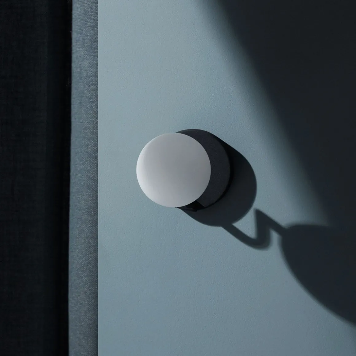 «Donnez-moi une lampe qui aura fière allure sur un loft de New York – avec ces mots, j’ai commencé à travailler avec la série Mobil pour Pholc.» – Monika Mulder. Applique mural en métal et verre opale de la marque Pholc.