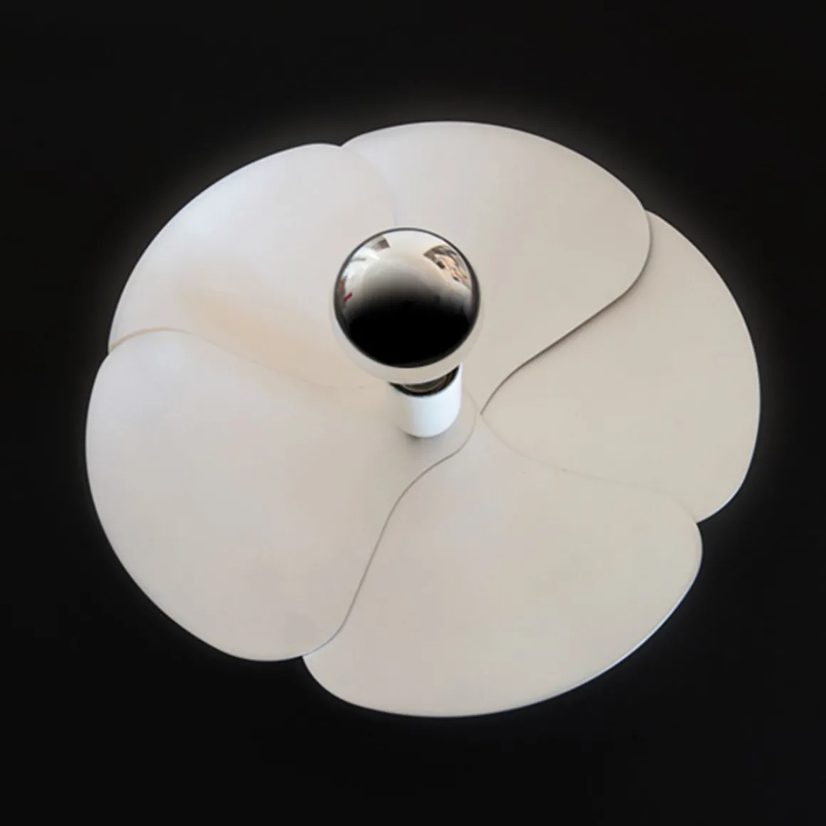 En 1967, Olivier Mourgue invente un appareil d’éclairage en forme de fleur en pétales d’aluminium fixé sur deux fils en métal chromé pour donner des appliques, des suspensions, des lampes ou des lampadaires. Il utilise cette nouvelle ampoule de l’époque dotée d’une calotte argentée qui permet de produire une lumière réfléchie et donc un éclairage de très belle qualité.
