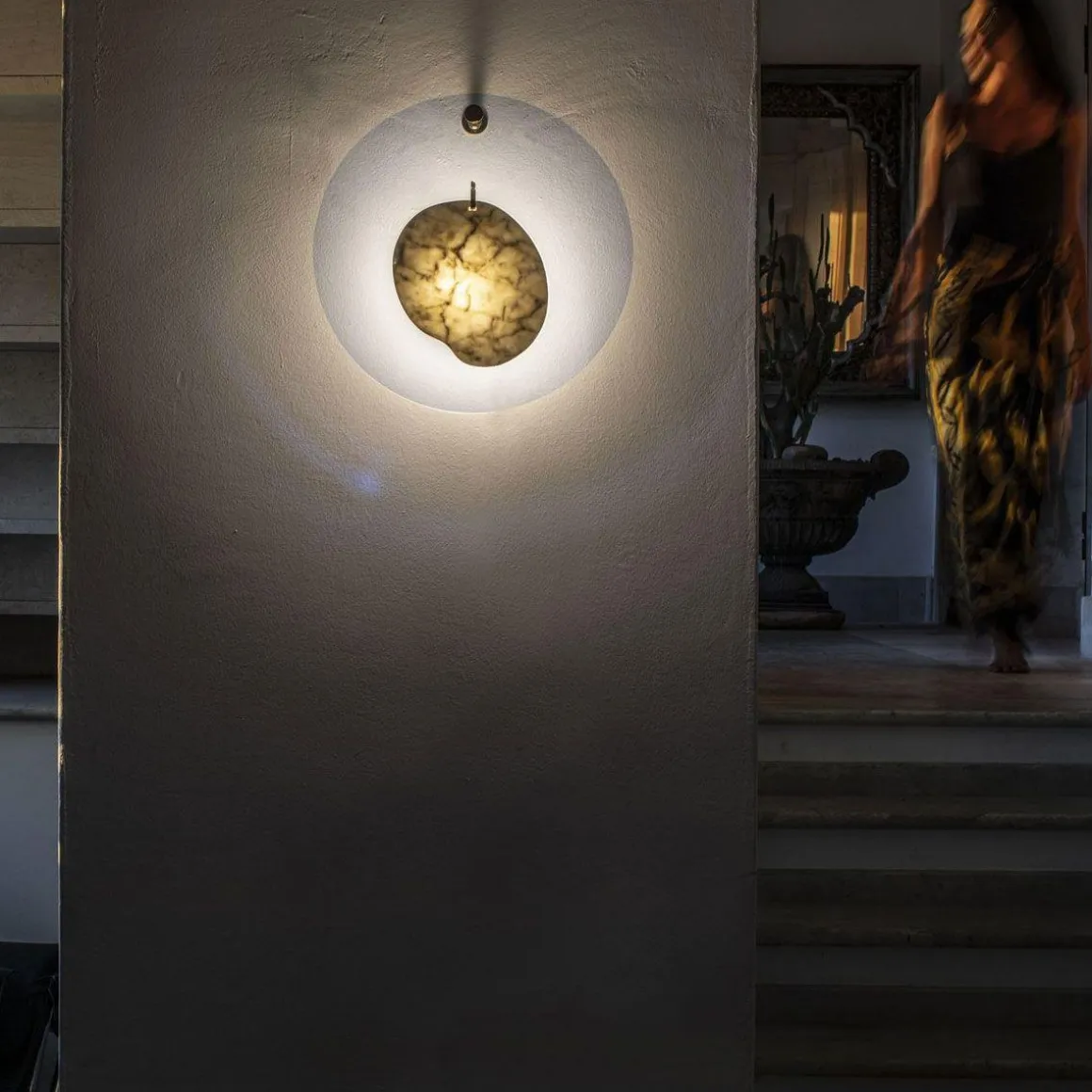 Gioa est un bijou conçu pour orner l’espace domestique. La magie de cette lampe tient à sa composition : un élément en marbre statuaire, placé au centre d’un disque transparent – les deux éléments, libres de se mouvoir, rappellent le rythme oscillant d’un pendentif ou d’une boucle d’oreille.