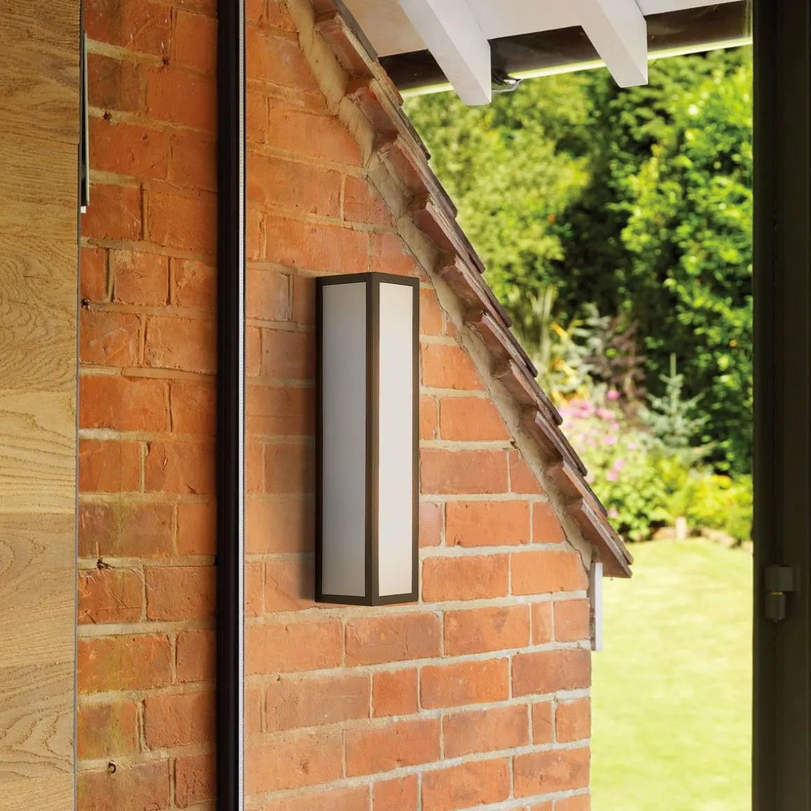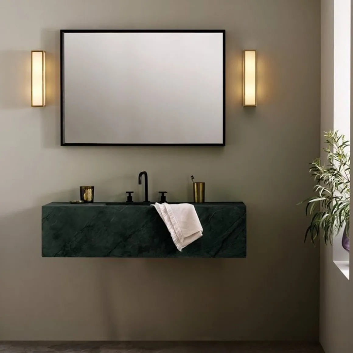 Une applique murale allongée, de fines entretoises en laiton massif et en verre dépoli, ce sont les matériaux dont est faite la lampe murale d’extérieur Salerno. Grâce à ces matériaux, elle résiste aux conditions particulières qui règnent près de la mer et convient donc à la région côtière. Cette lampe élégante peut être installée non seulement à l’extérieur, mais aussi dans la salle de bains, éventuellement en paire à droite et à gauche du miroir, elle fait très bonne figure.