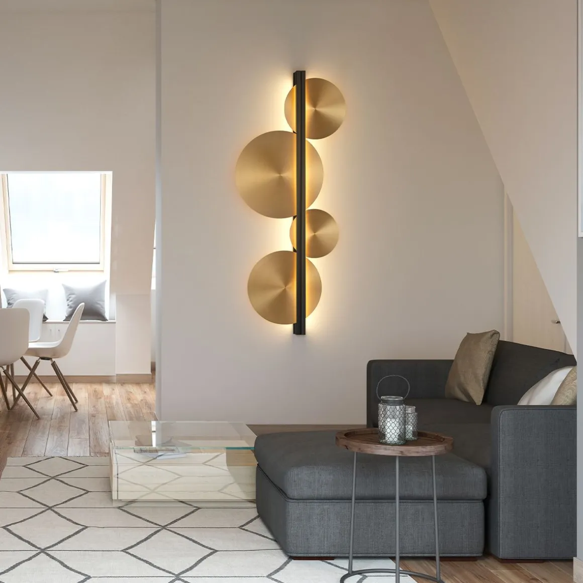 Collection de forme reliées par un trait lumineux, Strate, véritable sculpture, orne le mur aussi bien à la verticale qu’à l’horizontale. Par ses dimensions généreuses, elle habille l’espace et en devient une pièce maîtresse.