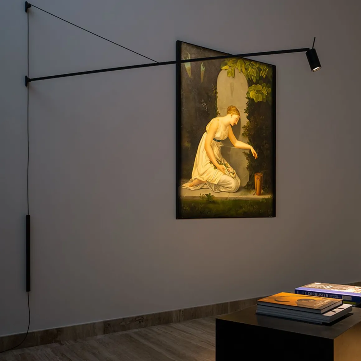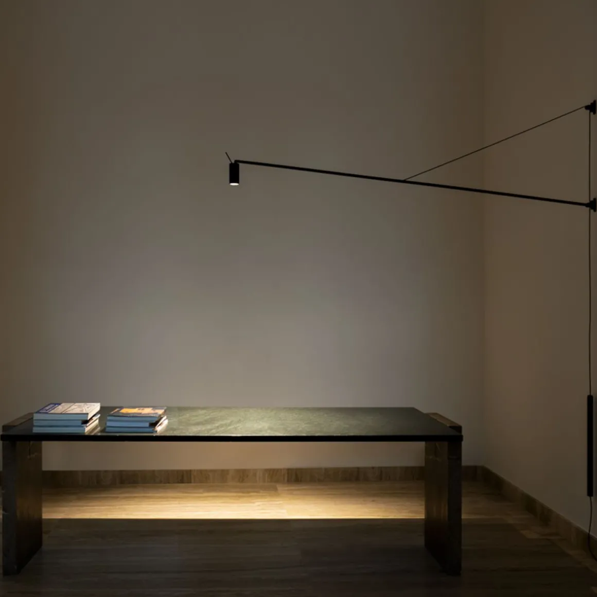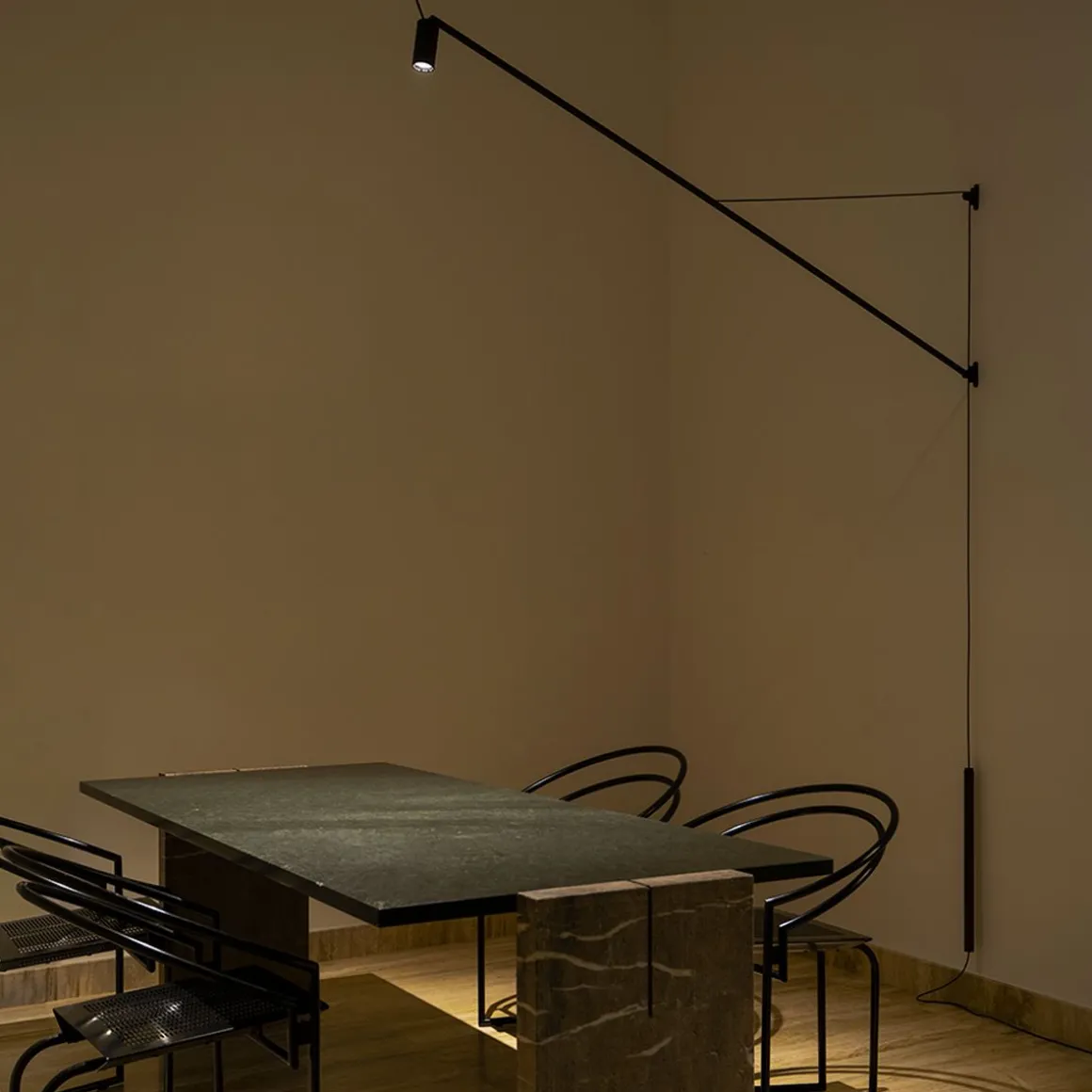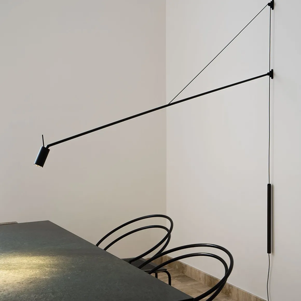 SWAN est une applique LED dimmable pour un éclairage direct. Structure en aluminium peint en noir mat. Rotation verticale du bras de 40°, contenue par un contrepoids en cuir, et horizontalementde de 180°. Sa tête cylindrique orientable avec filtre optionnel nid d’abeille pour anti-éblouissement permet d’orienter avec flexibilité le faisceau lumineux. Dimmer sur câble.