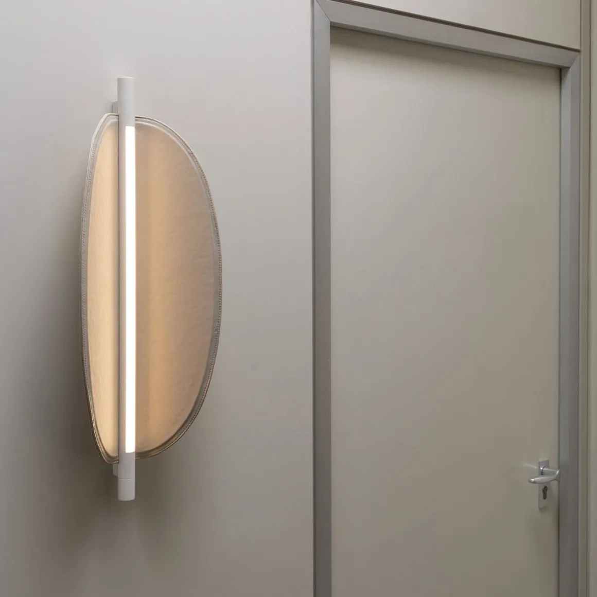 Conçues par Federica Biasi, les appliques et suspensions Thula reposent sur un élément central simple et architectural doté d’une fonction éclairante auquel s’ajoute un composant organique en bois ou en cuir matelassé dans un savant jeu d’addition et de soustraction. Se compose d’une LED linéaire à intensité variable ; dans la version simple murale, il peut être orienté, donnant ainsi une lumière directe ou indirecte.