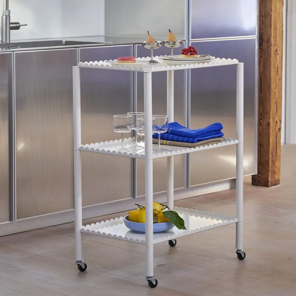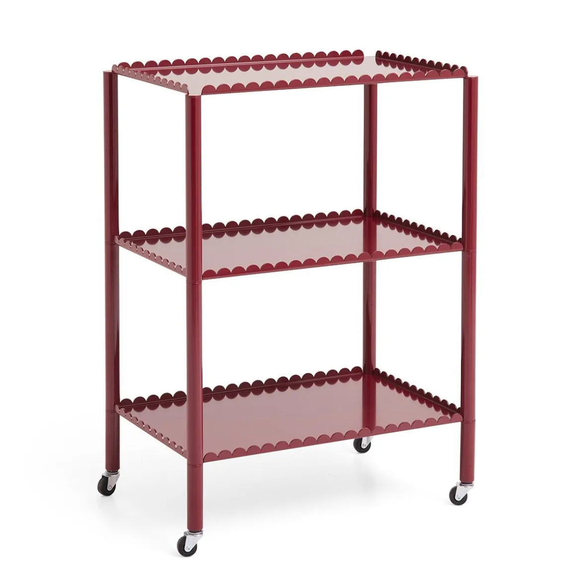 Conçu par le duo belge Muller Van Severen, Arcs Trolley est un chariot fonctionnel et décoratif enfermé dans une chaîne unifiée d’arcs verticaux. Petit meuble à forte présence, le chariot allie techniques industrielles et lignes poétiques pour créer une expression distinctive et sculpturale. L’élégant cadre festonné supporte deux ou trois niveaux, avec des pieds fins montés sur roulettes pour une manipulation facile. Fabriqué en acier peint par poudrage dans différentes options de couleurs, le chariot convient à la plupart des pièces et utilisations de la maison, de la présentation et du rangement d’objets dans le salon aux étagères supplémentaires dans la cuisine ou comme table de chevet.