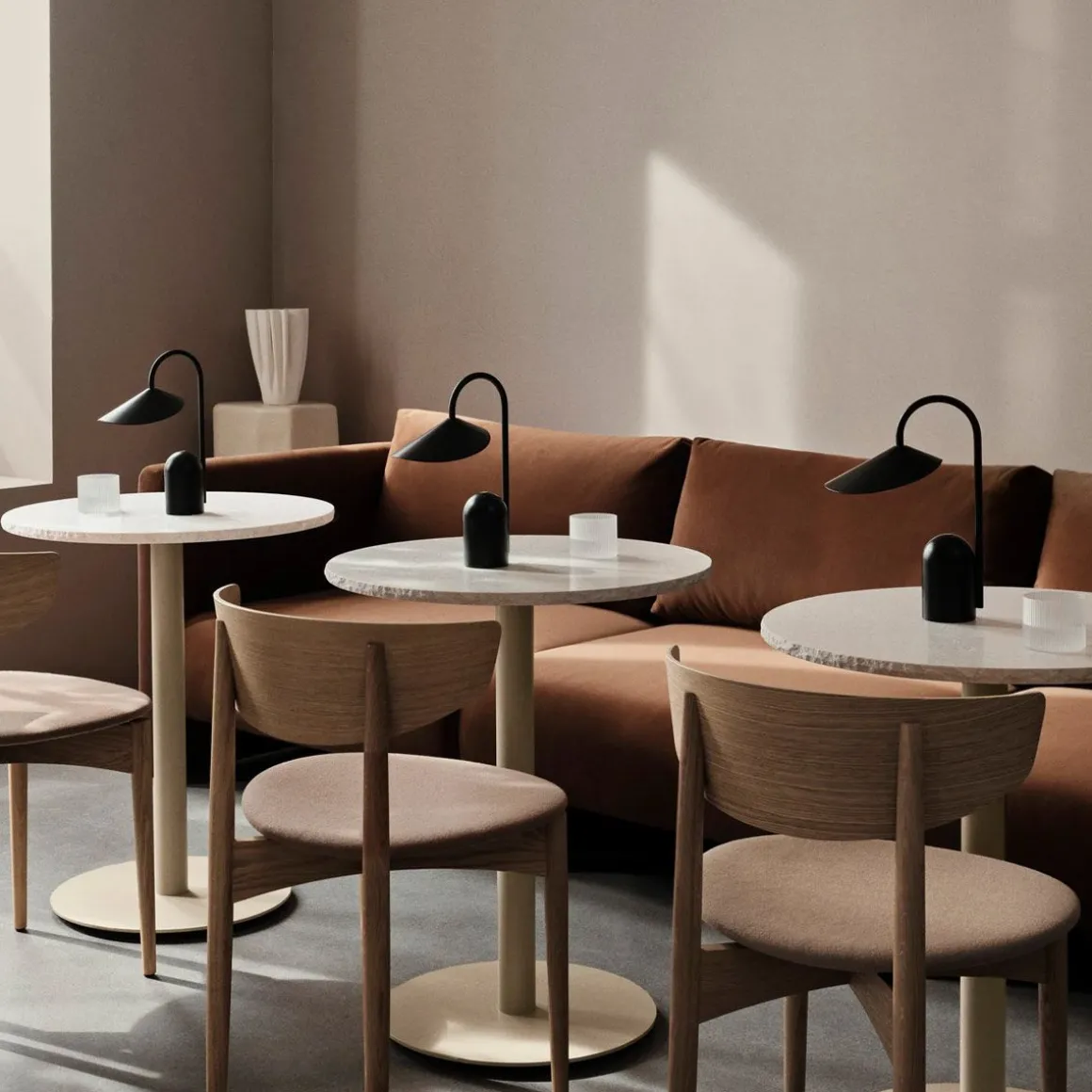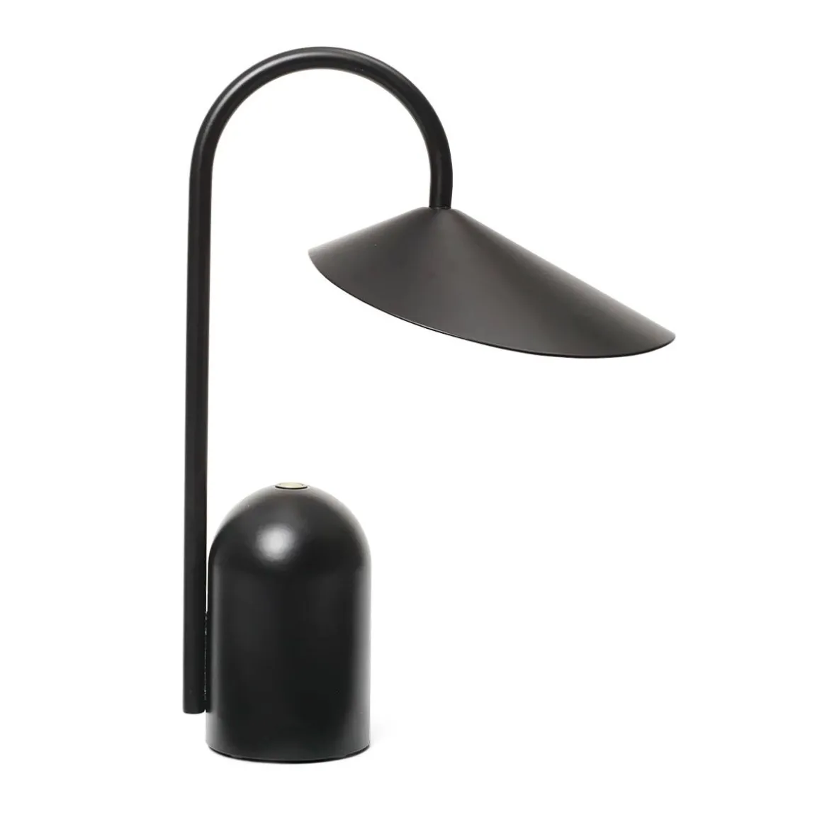 Arum lampe portable de Ferm Living. La lampe portative Arum est une solution d’éclairage polyvalente et mobile. Cette petite lampe LED portative est rechargeable via USB-C, ce qui vous permet de créer une ambiance douillette où que vous alliez. Tandis qu’elle évoque la forme de la lampe de table Arum, cette version portative est entièrement fabriquée en fer et en aluminium avec un revêtement peinture poudre, ce qui lui confère une grande durabilité et une finition élégante. Son design conserve l’élégance et l’équilibre caractéristiques de la collection, avec son abat-jour en forme de pétale qui semble flotter sur sa tige. La lampe est dotée d’un gradateur tactile à trois intervalles, ce qui permet de régler l’éclairage d’ambiance en fonction de vos besoins.