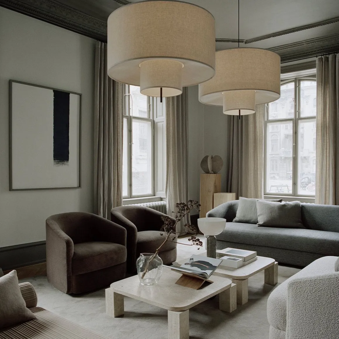 Atlas de New Works par John Astbury. Nommé d’après le mythique Titan condamné à porter le ciel sur ses épaules, les pieds solides de la table Atlas soutiennent et soulèvent le plateau spacieux. La rencontre et le contraste entre les pieds et le plateau de la table sont au cœur du design, chaque élément exagérant l’autre et créant la présence distincte et l’ambiance brutaliste de la table. John Astbury s’est inspiré pour l’Atlas de plusieurs événements de l’histoire de l’architecture. Il y a des références aux portiques et aux colonnades, mais Atlas est principalement basé sur l’archétype de base de la construction à poteaux et linteaux composé de poteaux et de linteaux. Assemblés avec une géométrie simple, le cercle et le carré, ce sont les archétypes de base qui créent ensemble la composition et le caractère de la table.