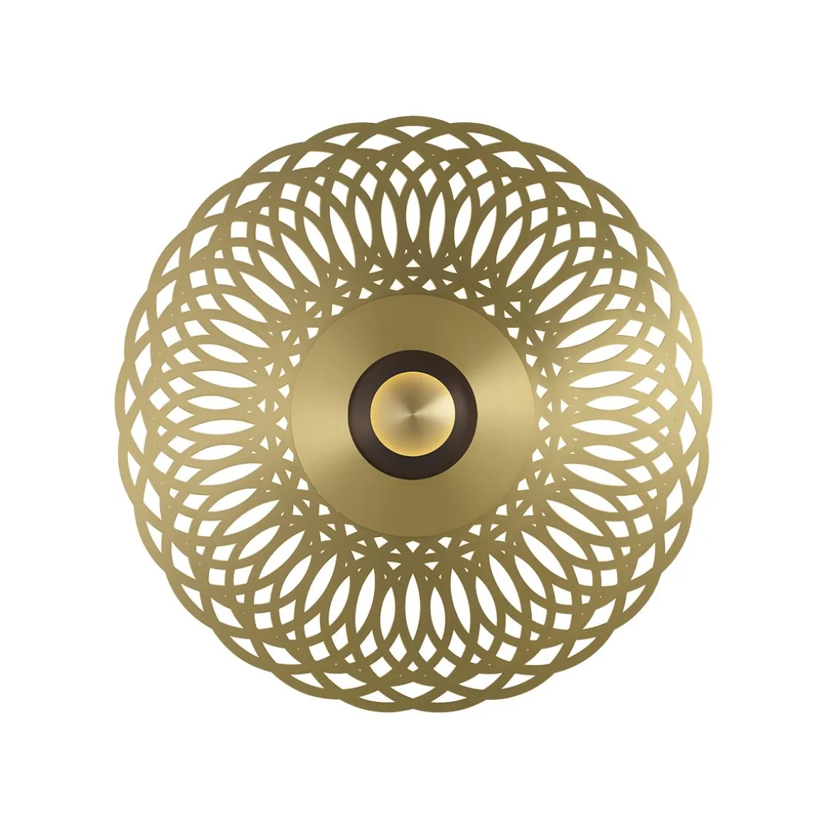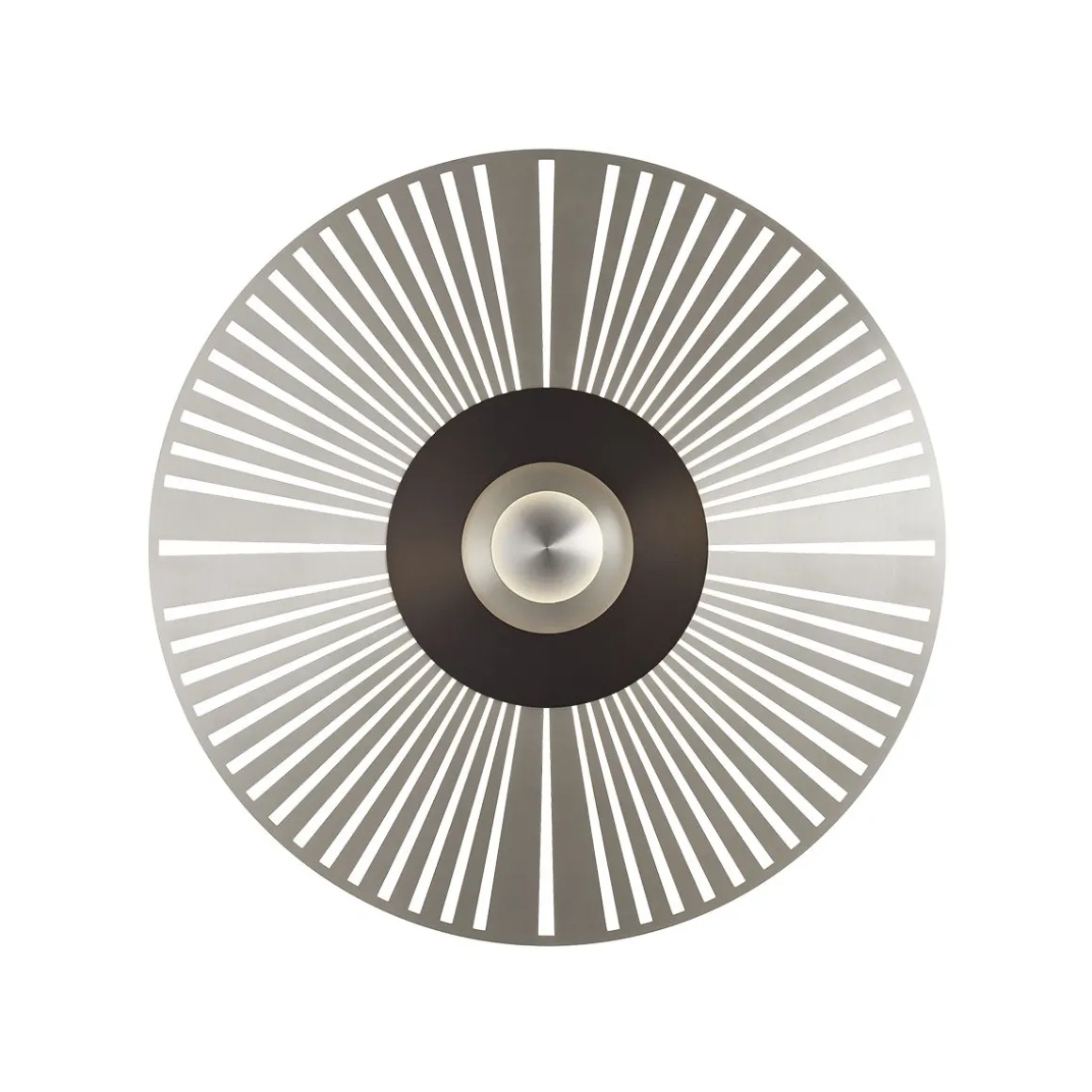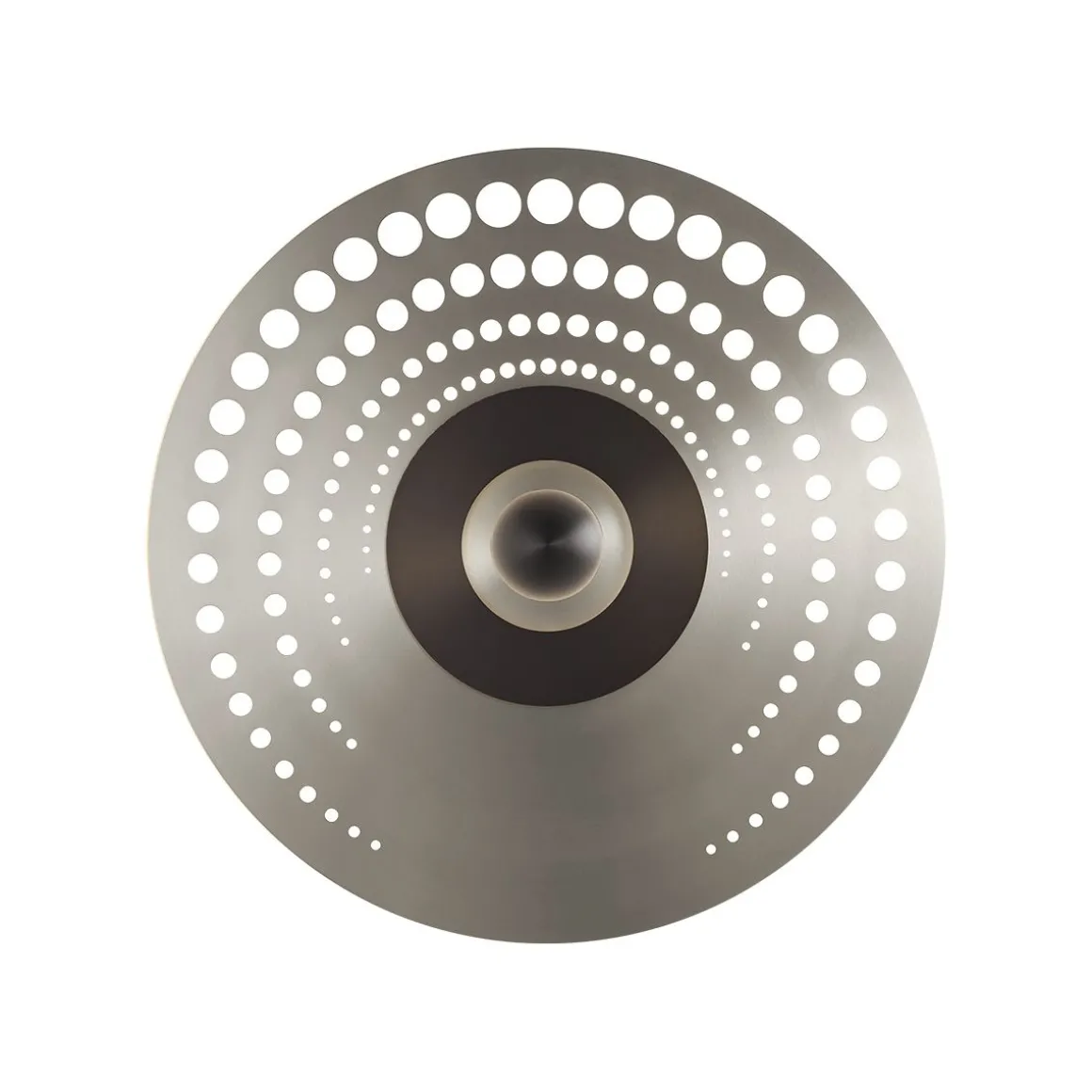 Au centre de sa grande couronne ajourée, les disques concentriques d’Atmos se succèdent jusqu’à son coeur lumineux. Grand soeur de l’applique Earth, Atmos se distingue par sa grand taille et la multitude de combinaisons de décors possibles.