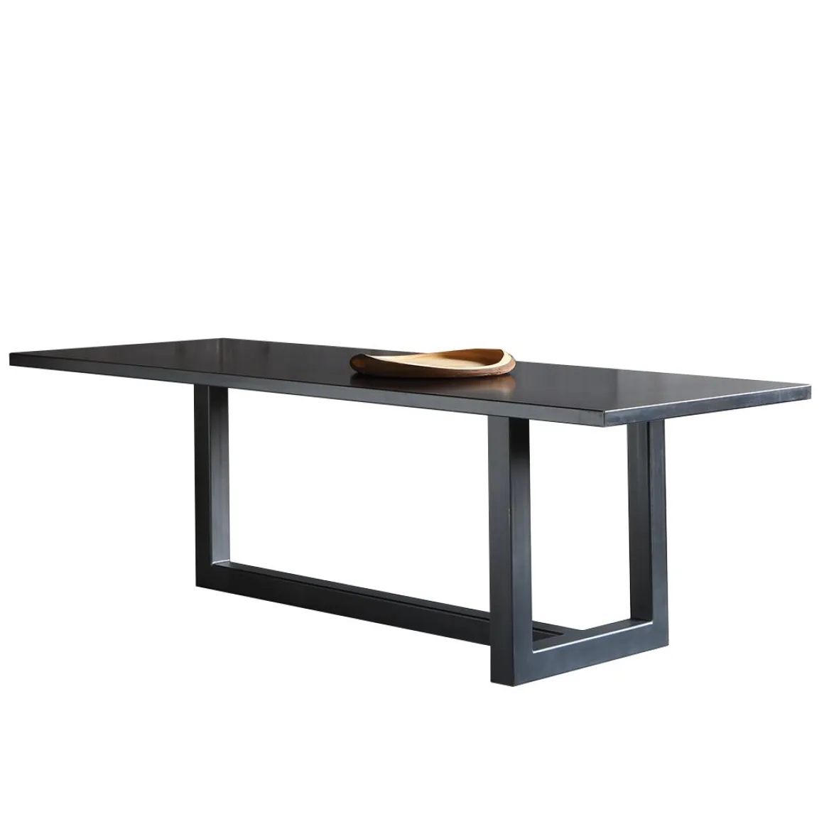 Augustin est une table à structure démontable avec pieds en tube d’acier et plateau en tôle d’acier naturelle découpée et courbée. Traitement phosphatation noir et fixage final à la cire d’abeille.