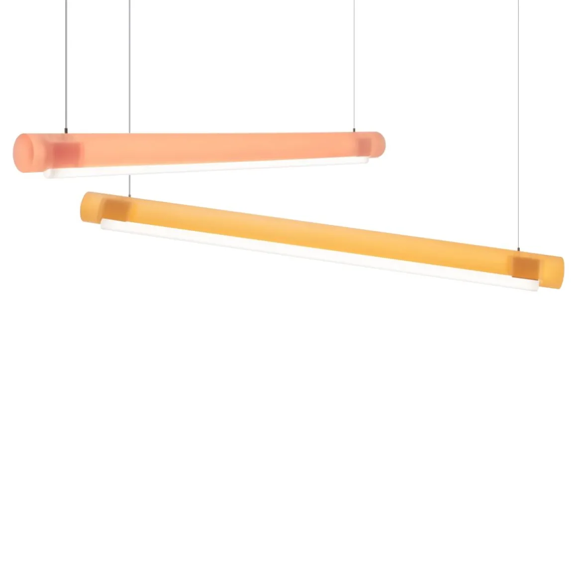 Grâce à l’expertise de Marcelis dans l’utilisation de matériaux translucides moulés, la barre cylindrique suspendue d’Aura Light peut être utilisée seule ou intégrée à un ensemble. Fabriquée à partir de matériaux entièrement recyclablés, l’ampoule sur mesure rehausse la translucidité chaleureuse d’Aura.
