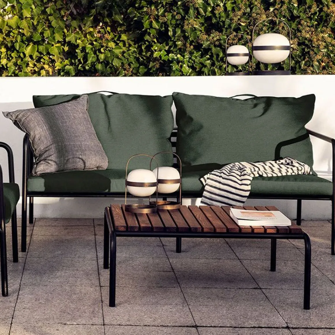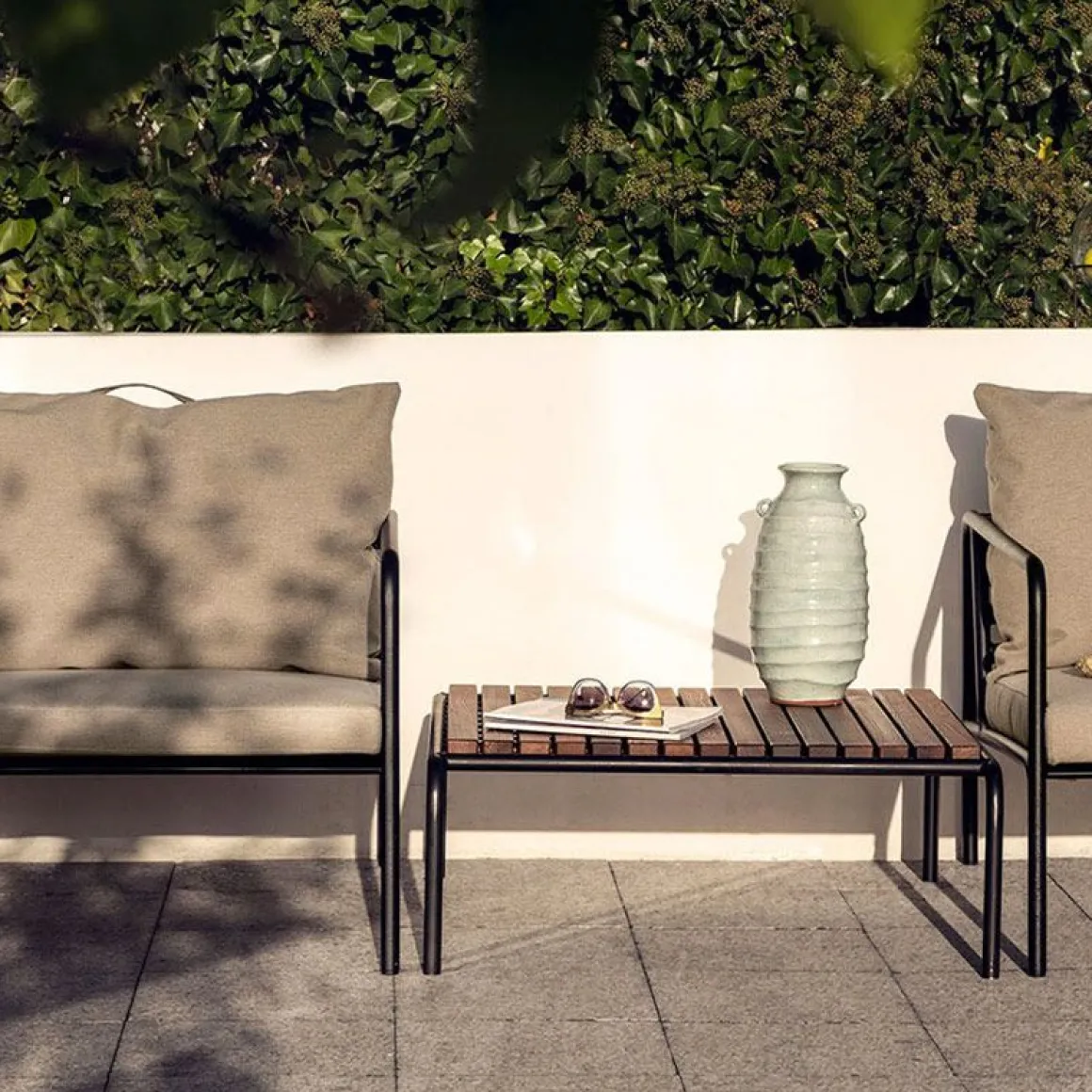 Le cadre sans entretien et la construction des grands coussins de dossier moelleux sont exactement cela – la simplicité de la structure, où les lignes basses garantissent que le design semble toujours fier, avec et sans coussins – été ou hiver. Les poignées des coussins, est une déclaration à la fonction du produit, ce qui les rend facile à saisir et à ranger si nécessaire.