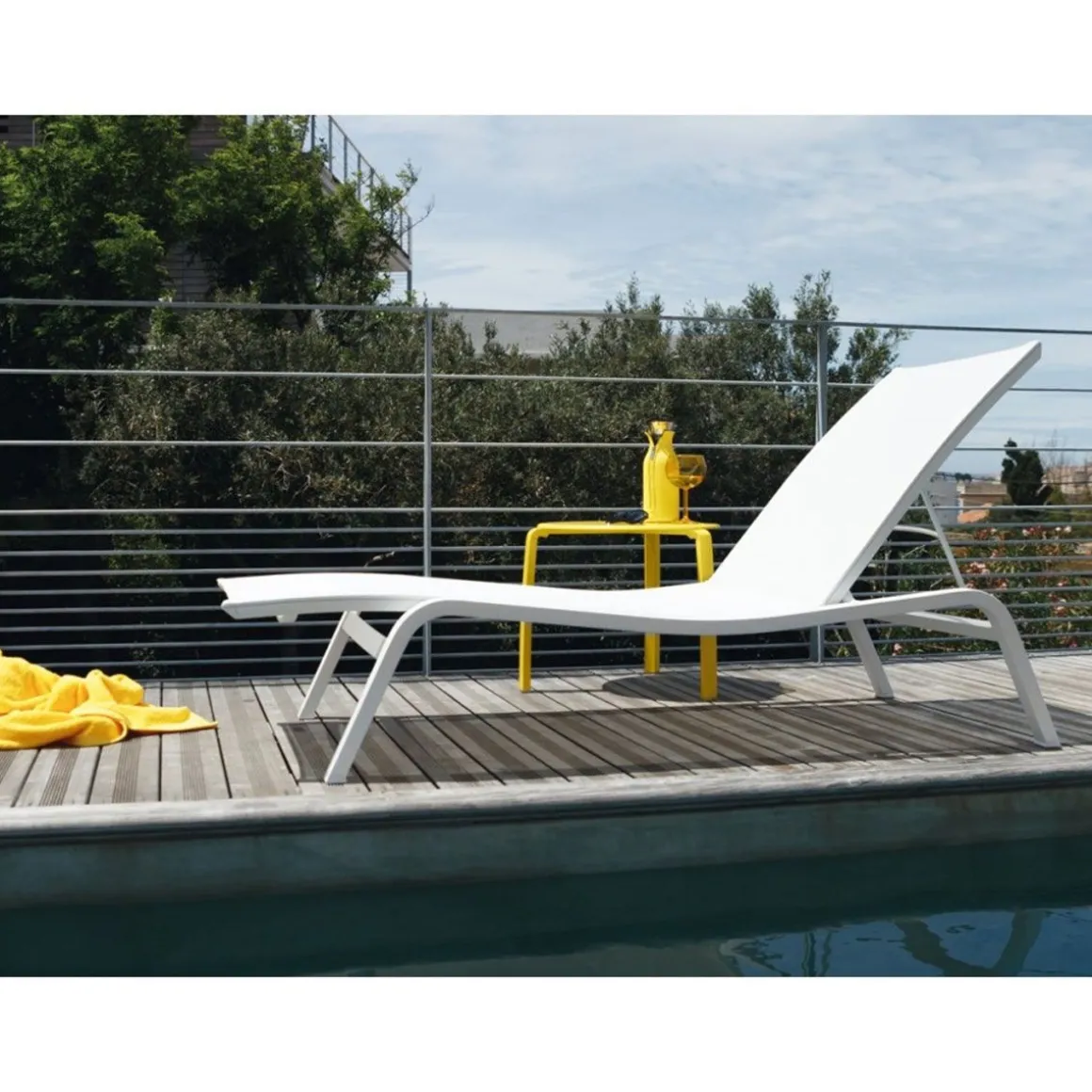 Bain de soleil Alizé de Fermob par Pascal Mourgue affiche un style particulièrement contemporain. Il possède une large surface de repos avec sa toile qui épouse parfaitement le dos. Son dossier et son repose-pieds sont inclinables et les roulettes sont intégrées. Ce bain de soleil est conçu spécialement pour l’extérieur, sa toile est indéchirable et la peinture est anti UV. C’est une invitation à la relaxation.