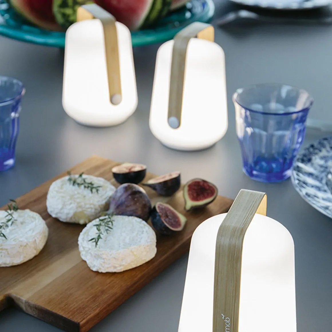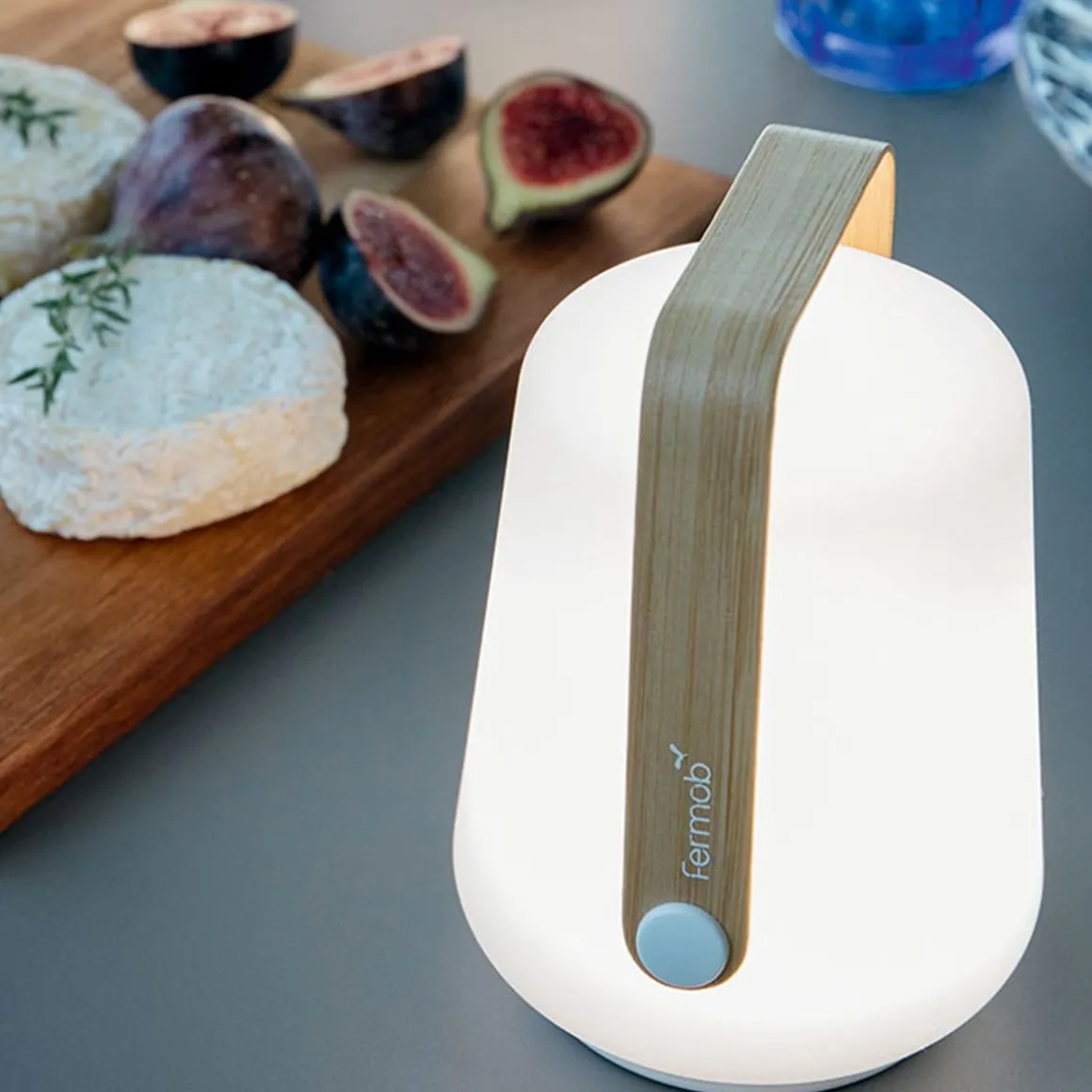 On craque littéralement pour les 3 lampes H12 Balad qui s’inscrivent parfaitement dans le concept de lampe baladeuse imaginé par Tristan Lohner. Légères et mobiles, ces lampes sans fil en version mini révolutionnent l’utilisation de la lumière. Sur une table en guise d’éclairage d’appoint, sur un rebord de fenêtre pour un éclaire doux et enveloppant, dans une chambre d’enfant pour un effet veilleuse : à vous d’imaginer comment les employer ? Avec l’édition spéciale Bamboo, les lampes baladeuses déco H12 Balad se rendent indispensables dans tous les intérieurs en quête de style. Toujours aussi ergonomique, leur poignée s’habille d’un nouveau coloris en bois naturel qui leur confère un look tendance et chaleureux auquel il est difficile de résister. Pour un effet waouh, n’hésitez pas à jouer sur l’accumulation ! Été comme hiver, ces petits lumignons n’ont pas leurs pareils pour illuminer vos grandes tablées… Derrière leur design emblématique, les trois lampes H12 Bamboo Balad n’ont rien à envier à leurs grandes sœurs. Un véritable concentré de technologie dans un mini format ! Avec un flux lumineux de 20 Lm chacune, ces lampes nomades sans fil proposent trois scénarios d’éclairage différents dont le célèbre mode scintillant qui imite les reflets dansants d’une bougie. Avec une autonomie de 13 heures, ces lampes nomades rechargeables promettent de nombreuses histoires du soir racontées avant de se préoccuper de leur recharge à partir du câble USB. Faciles d’entretien, ces lampes baladeuses d’intérieur ne redoutent ni les doigts gourmands maculés de chocolat ni les verres renversés lors d’une soirée trop arrosée. Et si malgré toutes vos précautions, elles venaient à tomber en panne, pas de panique ! Tous les luminaires Fermob sont démontables et réparables ! Une lampe baladeuse à led à l’épreuve de la vie quotidienne, vous en rêviez ? Fermob l’a fait !