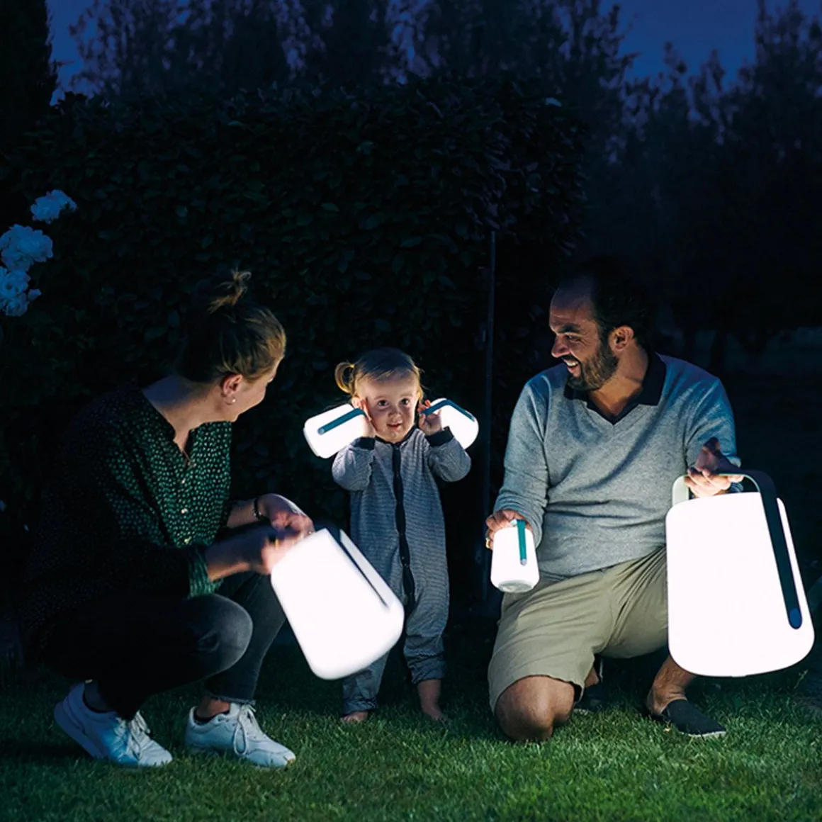 Balad Lampe H25 cm de Fermob par Tristan Lohner. La lampe Balad est une création joyeuse, accessible, colorée. Un produit connecté dans la modernité, un objet déco dans l’épure, tout en rondeur, sans superflu, un vrai coup de cœur qui séduit autant par son look que par son prix tout doux. Sans fil, cette lampe LED se déplace au gré de vos envies : petite lampe d’ambiance dans votre salon ou votre entrée, elle est idéale en veilleuse dans une chambre d’enfant (elle ne chauffe pas). Dans votre jardin ou sur votre terrasse, elle sera parfaite sur une table pour créer une ambiance lumineuse tamisée lors de vos repas. Munie d’une poignée en métal, elle est facile à transporter et peut aussi se supendre à une branche d’arbre pour une ambiance magique dans le jardin. La lampe Balad sans fil se recharge via un câble USB standard (fourni). Le bouton on/off permet de choisir entre deux intensités différentes, 50% ou 100%. Une fois rechargée, Balad diffuse une lumière douce pendant 12h50 en position 50% ou 7h35 en position 100%. Vous pouvez la placer où vous le désirez sans vous préoccuper du raccordement électrique. Elle utilise la toute dernière technologie LED et associe un éclairage décoratif à une durabilité et une consommation énergétique économique.