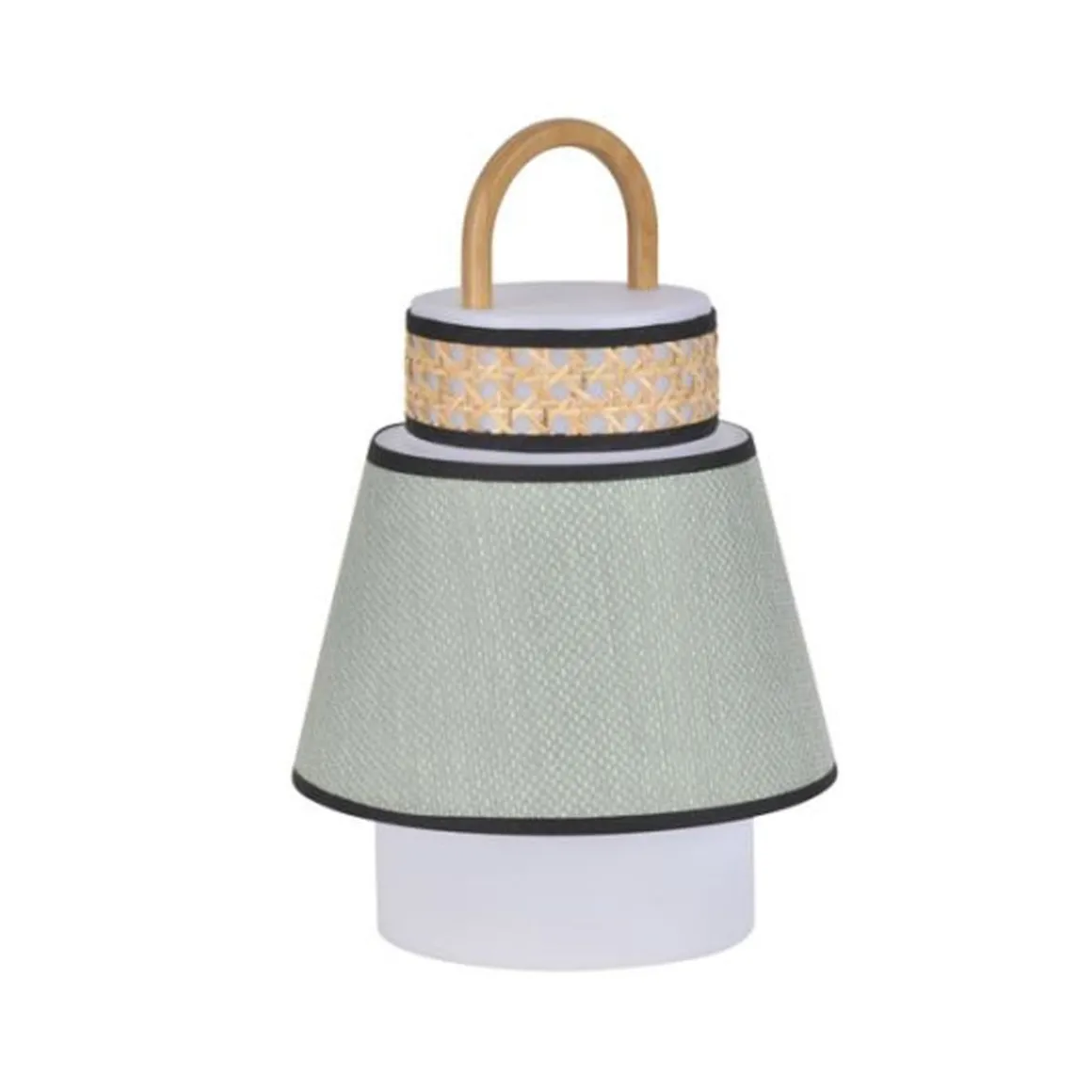 Matériaux : polypropylène, poignée bambou, abat-jour en textile et cannage naturel amovible