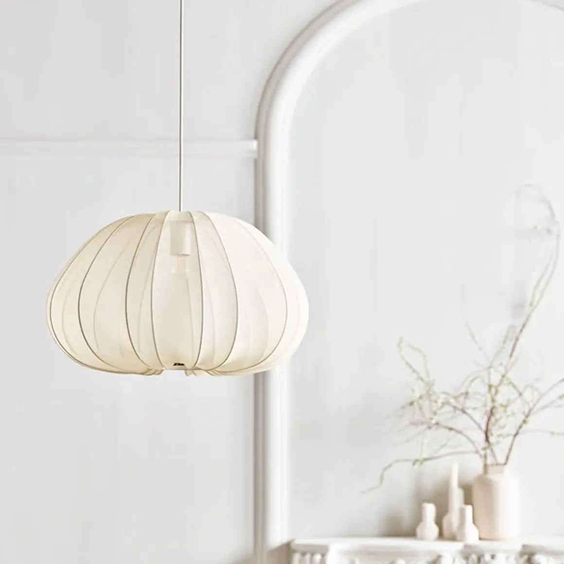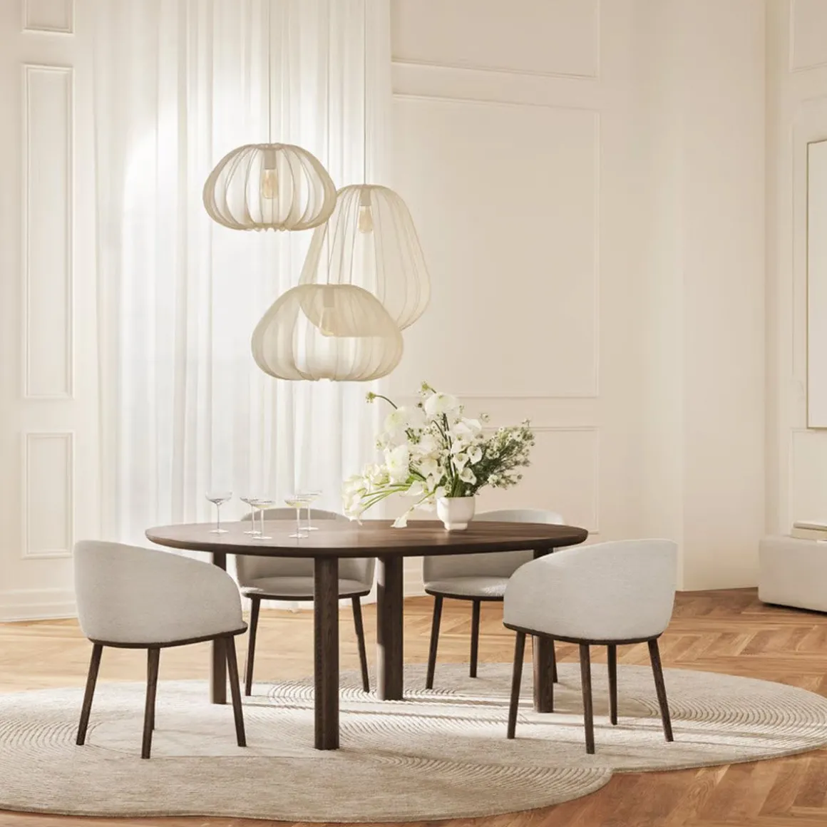 Balloon de Bolia par Meike Harde. Cousu à la main sur tout le côté, le tissu des suspensions Balloon, élégant et transparent, permet une lumière diffuse et apaisante.