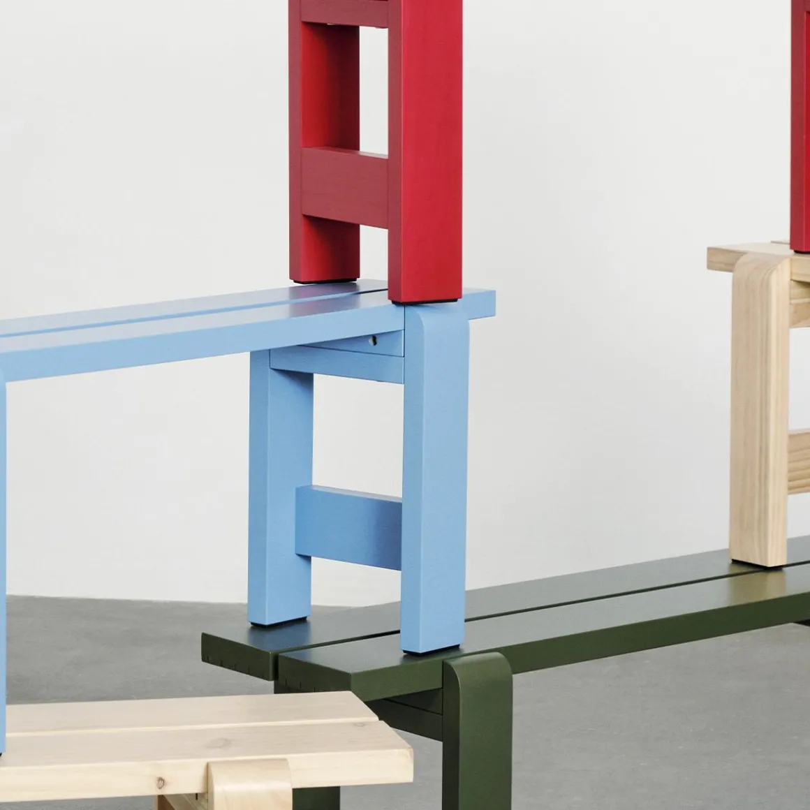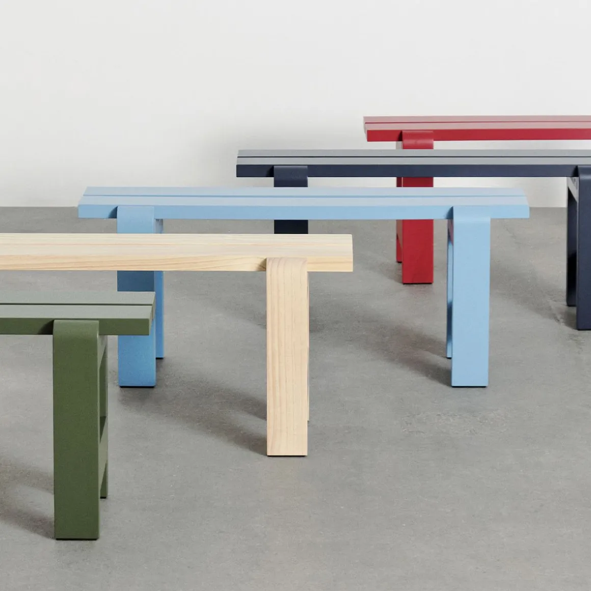 Le Weekday Bench de Hay par Hannes & Fritz a été inspiré par leur solution impromptue au manque de places assises lors d’un dîner. En conservant l’idée originale de rassembler les gens, le Weekday Bench combine une présence solide et robuste avec des joints légèrement arrondis, transmettant un sentiment de chaleur et de familiarité qui invite à un repas partagé et à une atmosphère sociale. Doté de la même construction simple que le banc de pique-nique classique, il est fabriqué à partir de planches de pin solides et durables qui se patineront magnifiquement et dureront de nombreuses années à venir. Le caractère fort mais universellement attrayant du banc Weekday, combiné à son traitement de surface à base d’eau et résistant aux intempéries, le rend adapté à une utilisation en extérieur dans un large éventail d’environnements, des cafés et parcs publics aux jardins privés ou partagés.